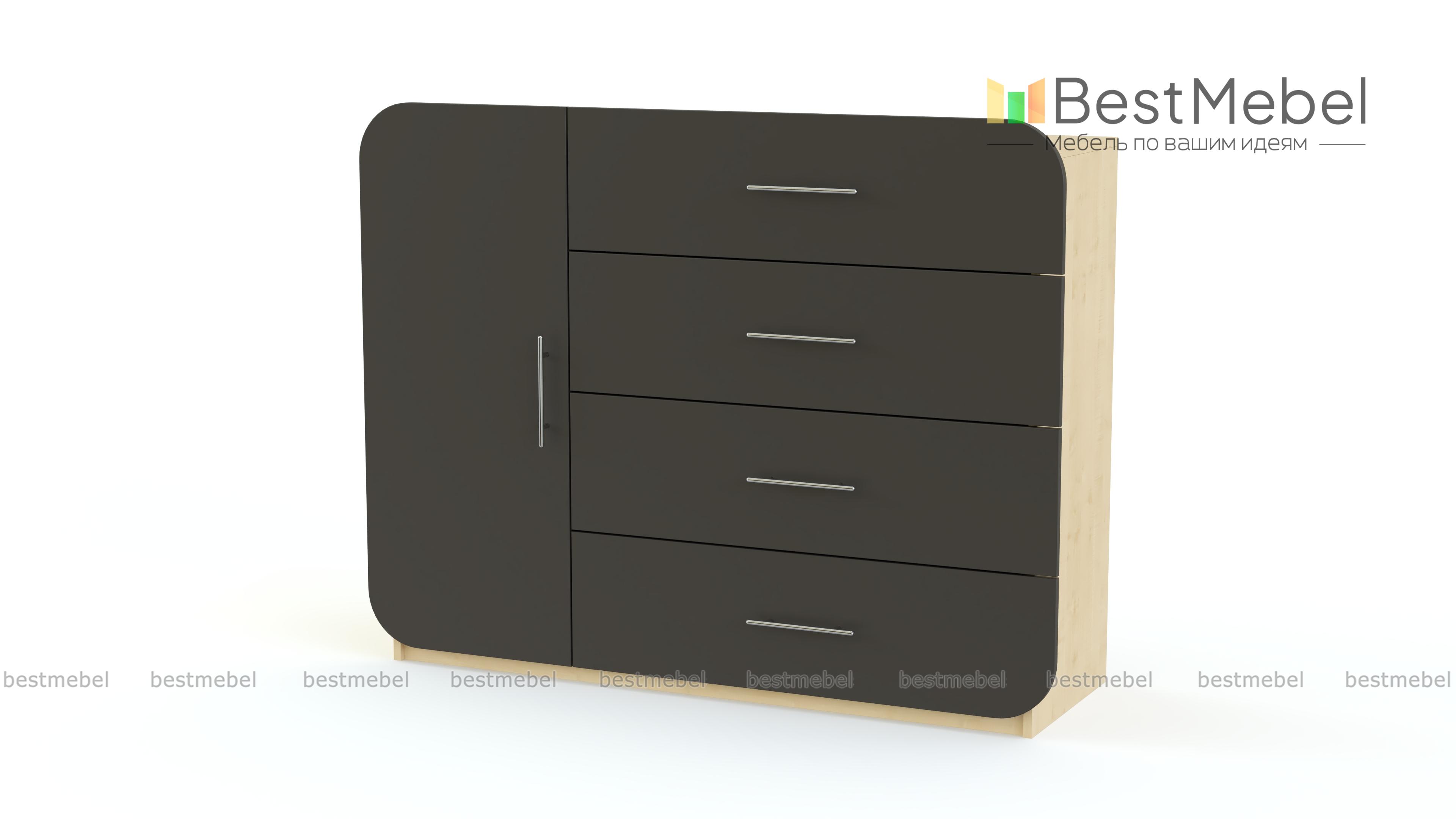 Комод Элиза 22 BMS дополнит современные интерьеры в стиле минимализм и хай-тек. Модель со скругленным по углам фасадом в ярком терракотовом цвете станет эффектным элементом дизайна и поможет вам разместить большое количество вещей. Удобная система хранения включает в себя распашное отделение с полкой и четыре широких выдвижных ящика, а для предметов декора или аппаратуры предусмотрена просторная столешница. Купить комод Элиза 22 BMS приглашаем в наш интернет-магазин по отличной цене.