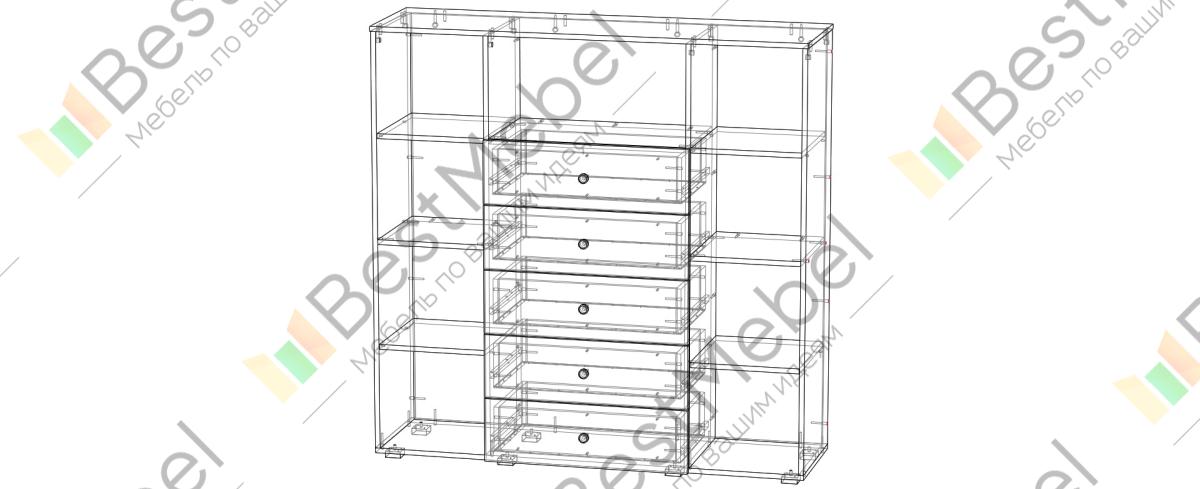Комод Мика 5 BMS – стильная альтернатива привычному шкафу в интерьере современной гостиной. Элегантная модель в сочетании насыщенного древесного оттенка венге и белого глянца может стать частью модульной композиции или самостоятельным предметом меблировки. Крупногабаритная конструкция оборудована пятью выдвижными ящиками для разнообразных бытовых мелочей и расположенными по периметру открытыми полками для книг и декоративных предметов. Купить комод Мика 5 BMS по выгодной цене приглашаем в наш интернет-магазин.