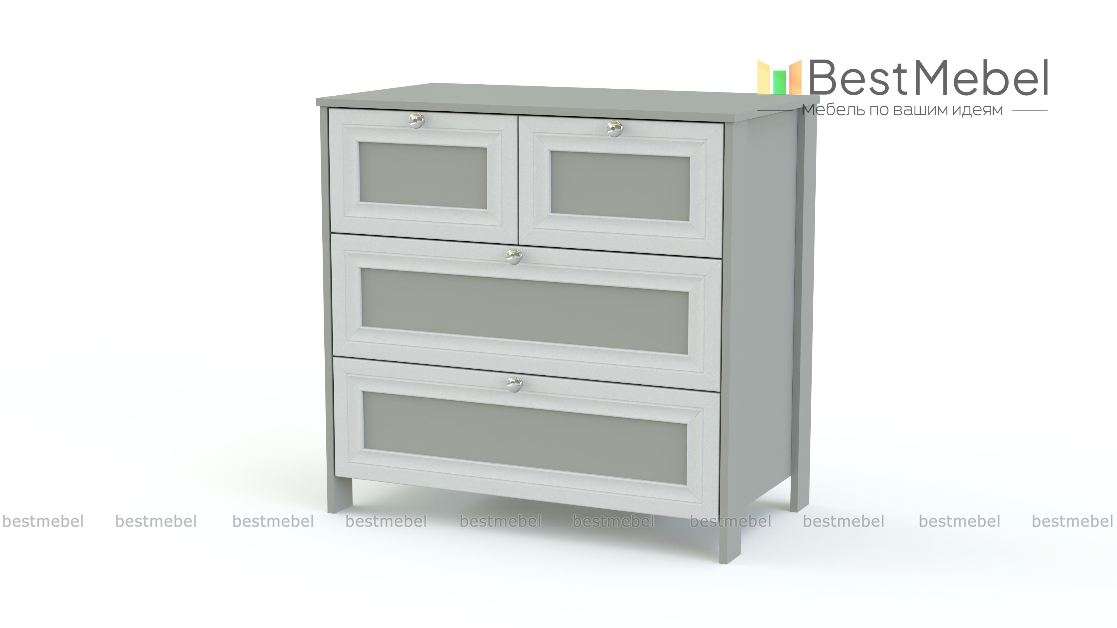 Комод Соната BMS станет изящным дополнением спальни в стиле прованс или классическом. Комод на высоких ножках выполнен в светлых древесных тонах и декорирован изящной рамкой. Вы сможете эффектно разместить на столешнице декоративные предметы, а для хранения бытовых мелочей, одежды и домашнего текстиля конструкцией предусмотрены два малых и два больших выдвижных ящика с ручками-кнопками. Купить комод Соната BMS приглашаем к нам в интернет-магазин.