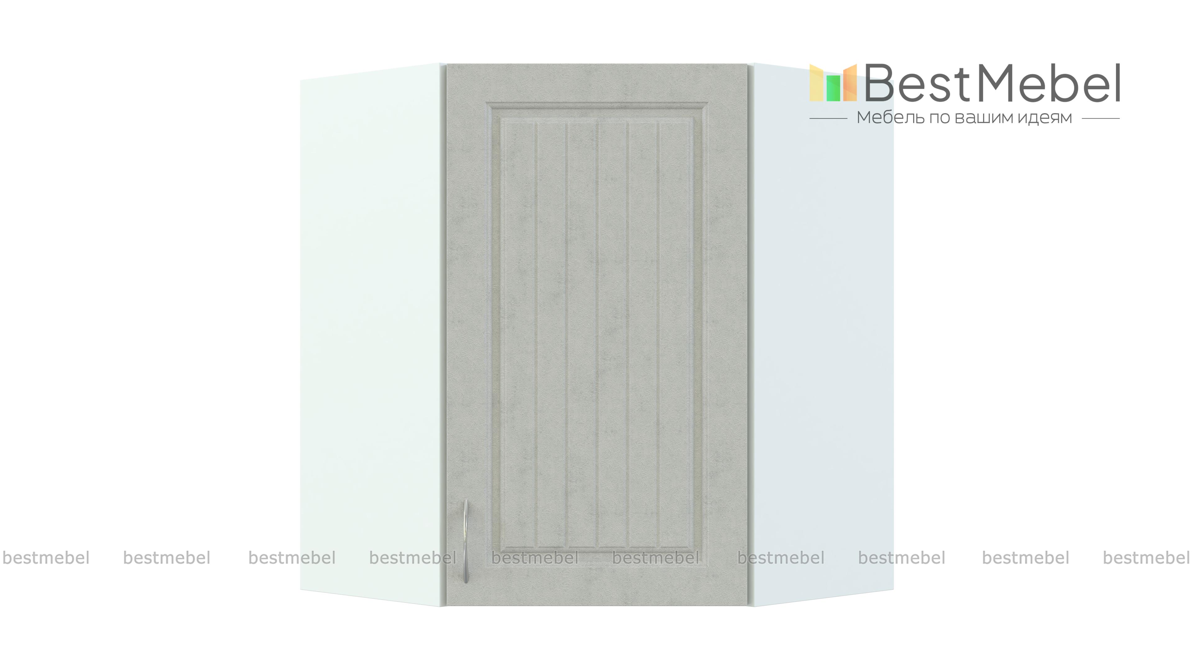 Шкаф навесной угловой Николь BMS выполнен в форме трапеции и отличается вместительностью и функциональностью. Модель выгодно использует угловое пространство кухни и предназначена для стыковки боковых модулей верхнего ряда. За распашной дверцей находится внутреннее отделение с полкой для хранения продуктов и кухонных аксессуаров. Фасады светлых тонов с фрезеровкой и ручкой под серебро станут частью элегантного комплекта в стиле кантри. Купить шкаф навесной угловой Николь BMS вы сможете по лучшей цене в нашем интернет-магазине.
