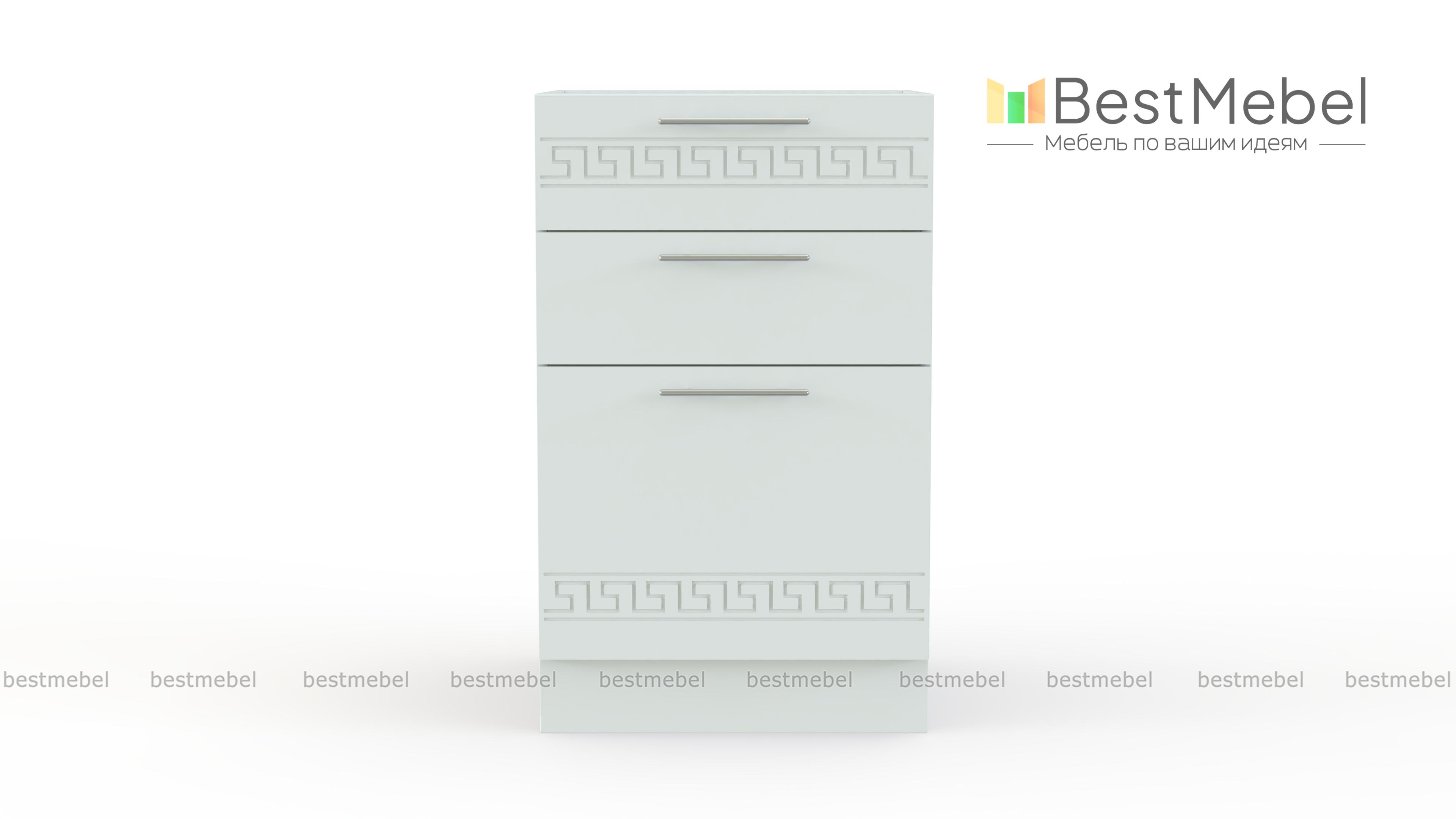 Заказ 00000938300, изделие ЭСКИЗ №00000938300 Тумба напольная 3 ящика Греция BMS (600х850х600) Отличное качество. Стильно смотрится. Цвет в тему. Заказал всю кухню в свою маленькую хрущевку. Фарнитуру подсказали менеджеры. Все ходит плавненько