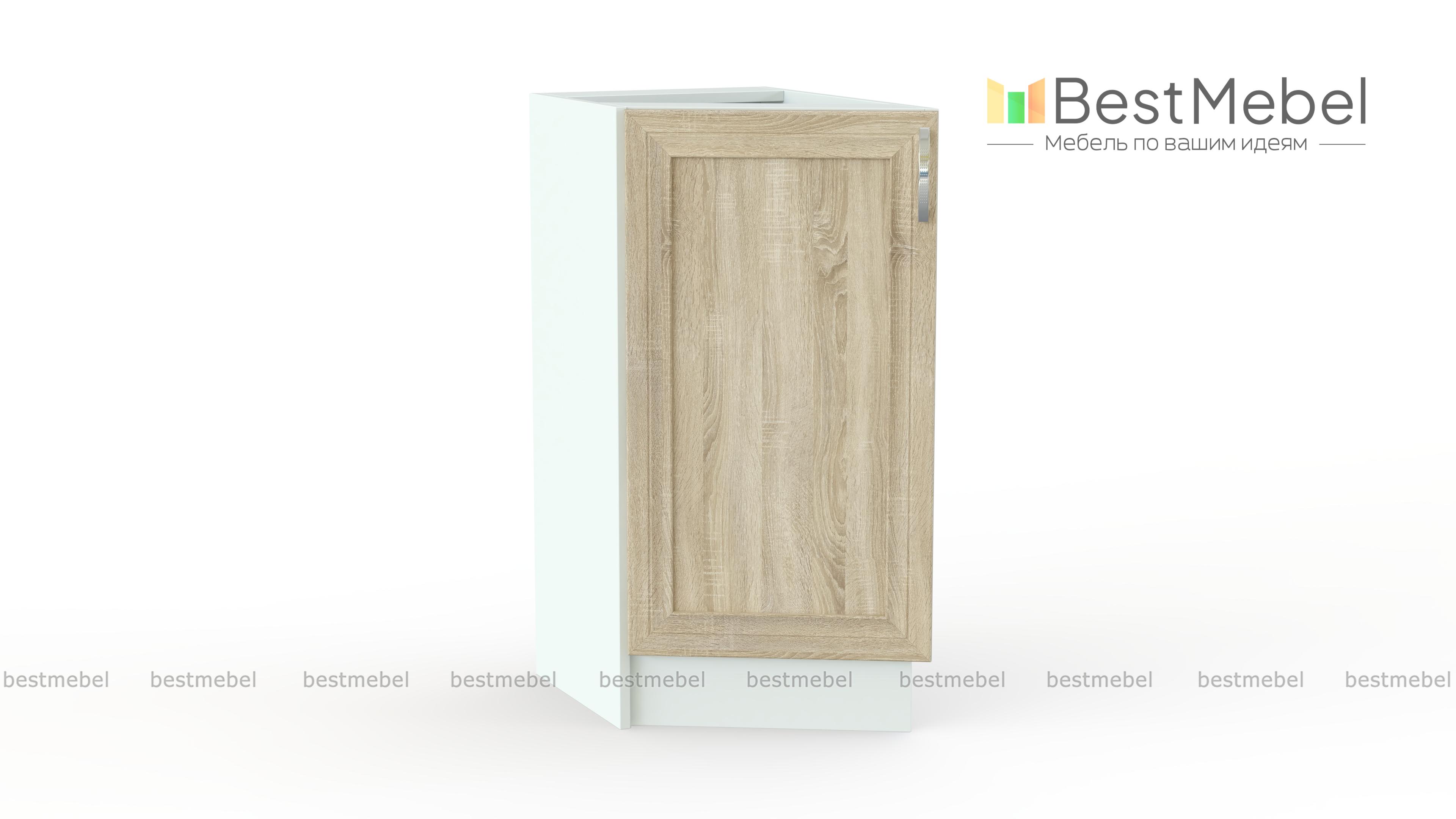 Тумба торцевая Трапеза рамочная BMS станет той деталью, которая придает завершенный вид всей композиции, занимая минимум места. Не только декоративное, но и практичное дополнение модульного гарнитура для кухни, тумба оборудована распашным отделением с полкой и компактно разместит разнообразные бытовые мелочи. Гармонично вписаться в классическую меблировку поможет традиционный рамочный фасад древесного оттенка. Купить тумбу торцевую Трапеза рамочная BMS недорого приглашаем в наш интернет-магазин.