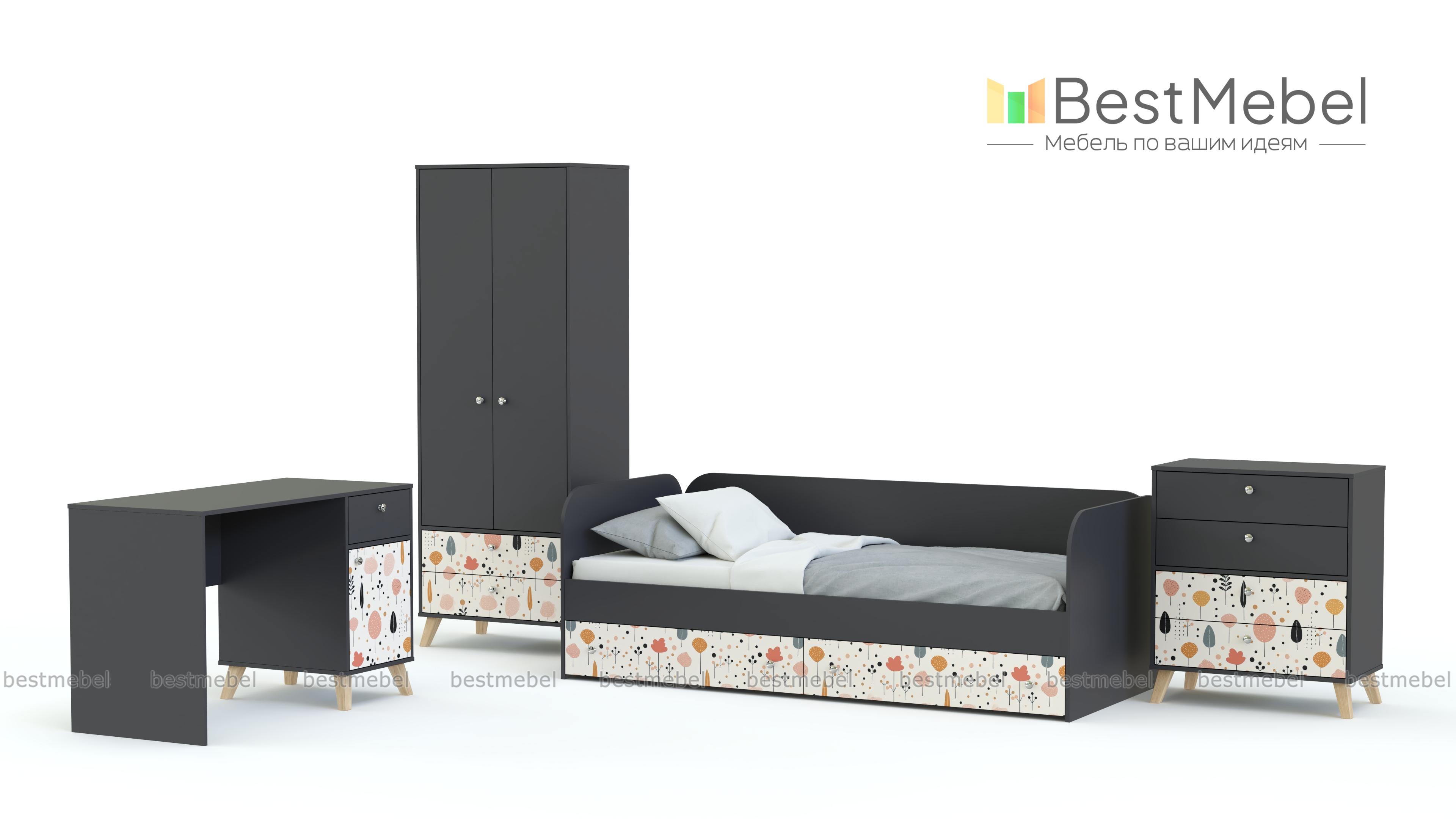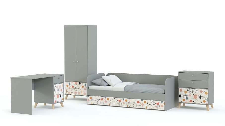 Детская комната Эльза 3 BMS поможет обустроить несколько функциональных зон: для сна, учебы и хранения вещей ребенка. Продуманная конфигурация состоит из кровати с ящиками, письменного стола, комбинированного двухдверного гардероба и комода для белья или игрушек. В нейтральную палитру комнаты добавлены цветные акценты — симпатичный рисунок в технике фотопечати на нижних фасадах. Купить детскую комнату Эльза 3 BMS, изготовленную по вашим размерам, приглашаем к нам в интернет-магазин.