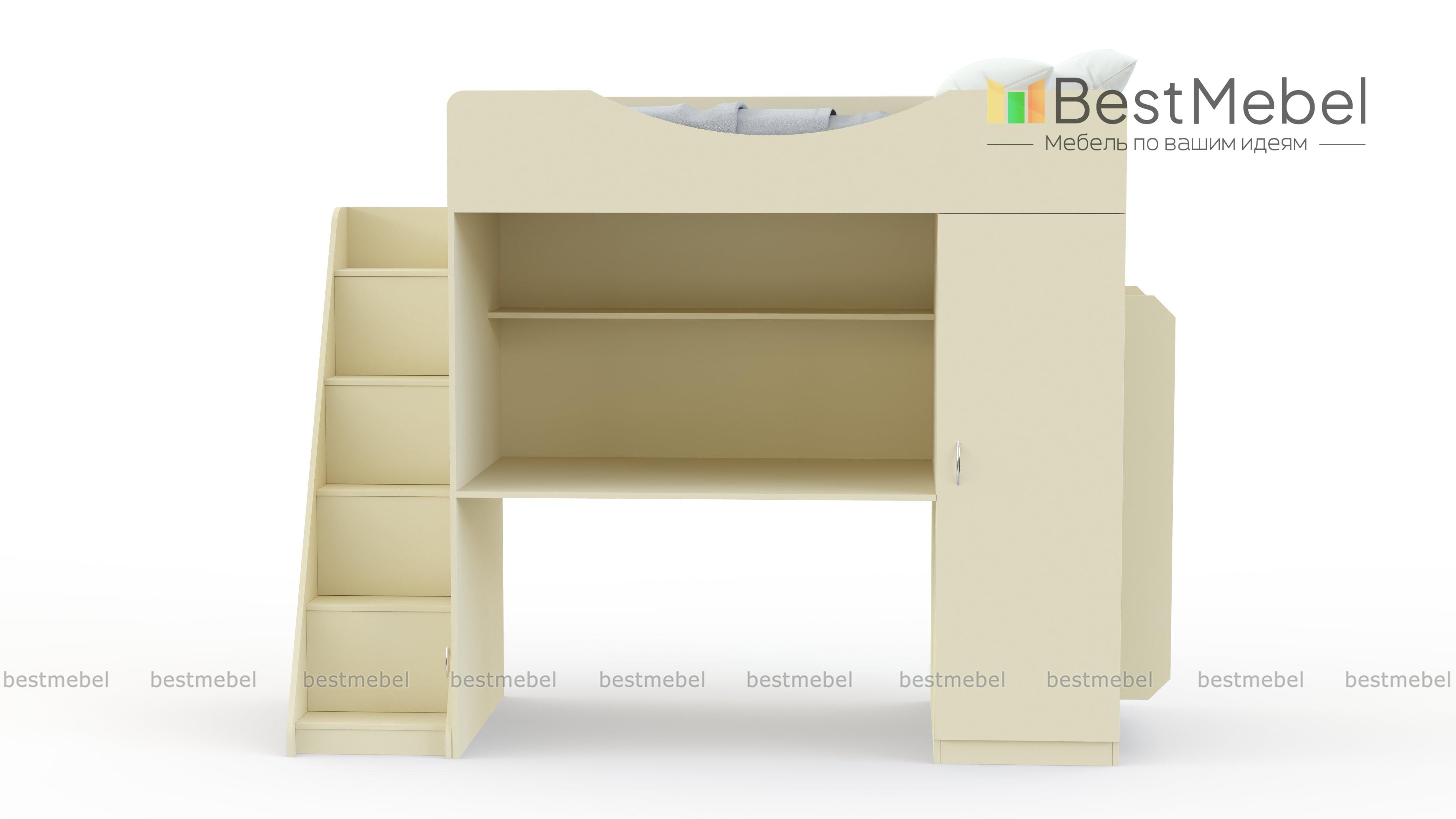 Детская кровать-чердак Миф 9.4 с полками BMS поможет сэкономить полезную площадь комнаты для активных игр. Современная комбинированная модель объединила комфортное спальное место второго яруса с удобной системой хранения и рабочей зоной. Встроенный шкаф, мобильный комод и лестница-стеллаж помогут разместить одежду, постельное белье и игрушки ребенка, а для учебы и творческих занятий предусмотрен письменный стол с книжной полкой. Купить детскую кровать-чердак Миф 9.4 с полками BMS приглашаем в наш интернет-магазин, подобрав интересное цветовое решение.