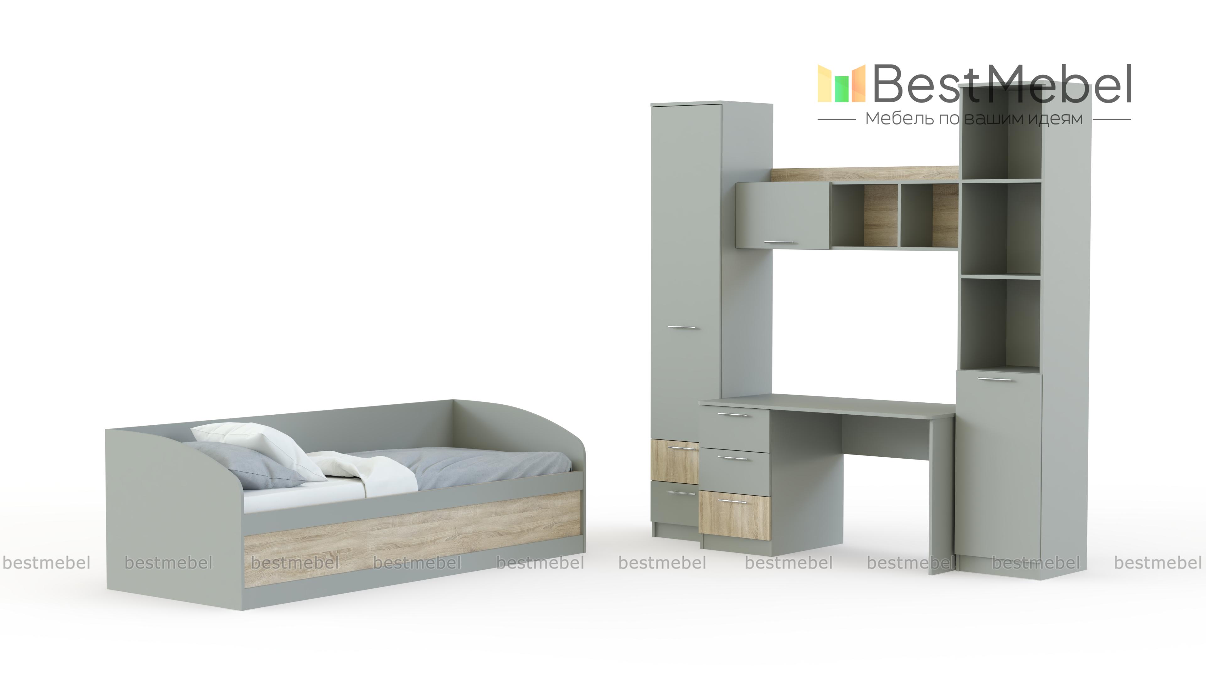 Детская мебель Рико 2 BMS отличается современным дизайном, функциональностью и компактно объединяет комфортное спальное место с продуманной системой хранения. Цветовое решение – светлые древесные оттенки с контрастными элементами, легко вписать в интерьер детской комнаты. В комплекте кровать-софа, просторный стол с тумбой, два пенала и навесная секция с распашной дверцей и открытыми полками. Купить детскую мебель Рико 2 BMS вы всегда сможете в нашем интернет-магазине.