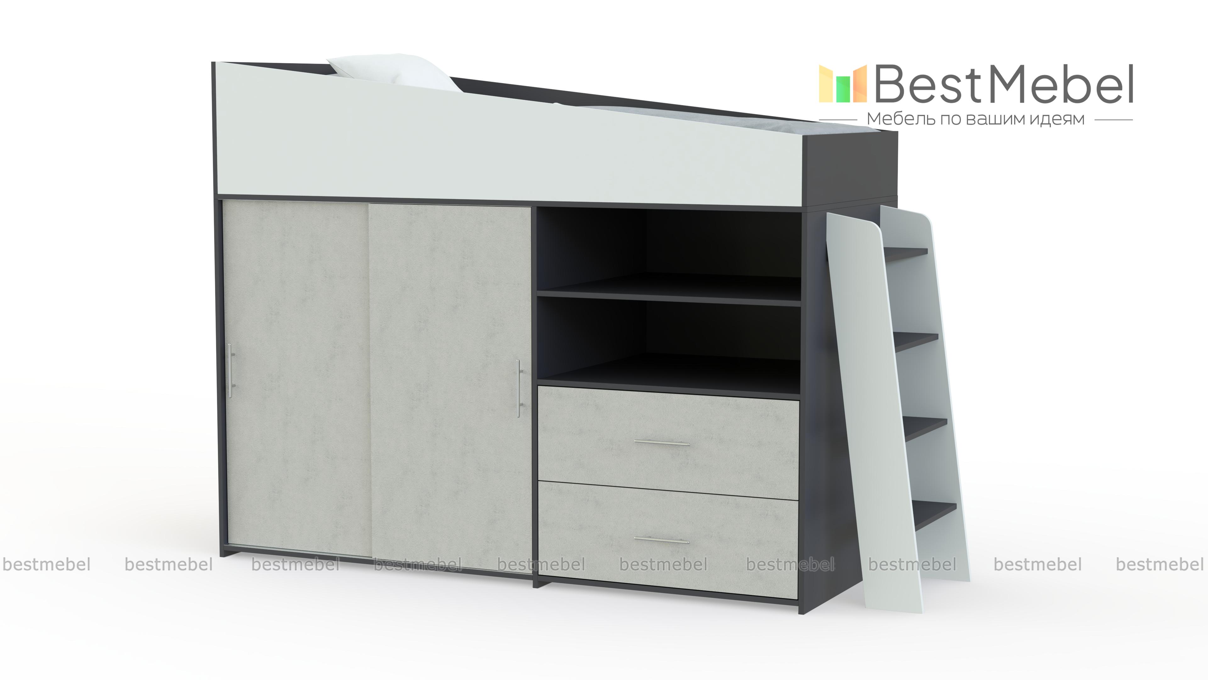 Кровать-чердак Дождик BMS – это надежность, безопасность и высокая функциональность. Модель незаменима в современных малогабаритных квартирах и позволит сэкономить полезную площадь детской комнаты, компактно объединив просторное спальное место с защитными бортиками, шкаф-купе для одежды, открытые полки и вместительные выдвижные ящики для игрушек и постельных принадлежностей. Купить кровать-чердак Дождик BMS по доступной цене приглашаем в наш интернет-магазин.