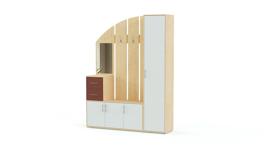 Стенка-прихожая «Идеал 13» BMS – небольшая, но на редкость вместительная стенка, которая порадует владельцев не только симпатичным внешним видом, но и приятной ценой. В комплект входят пенал с выдвижной штангой, тумба с распашными отделениями и скругленная панель с зеркалом и крючками для верхней одежды. Светлые оттенки под массив дерева легко впишутся в интерьер, а разноцветные фасады добавят ему ярких красок. Купить стенку-прихожую «Идеал 13» BMS вы всегда можете недорого в нашем интернет-магазине.