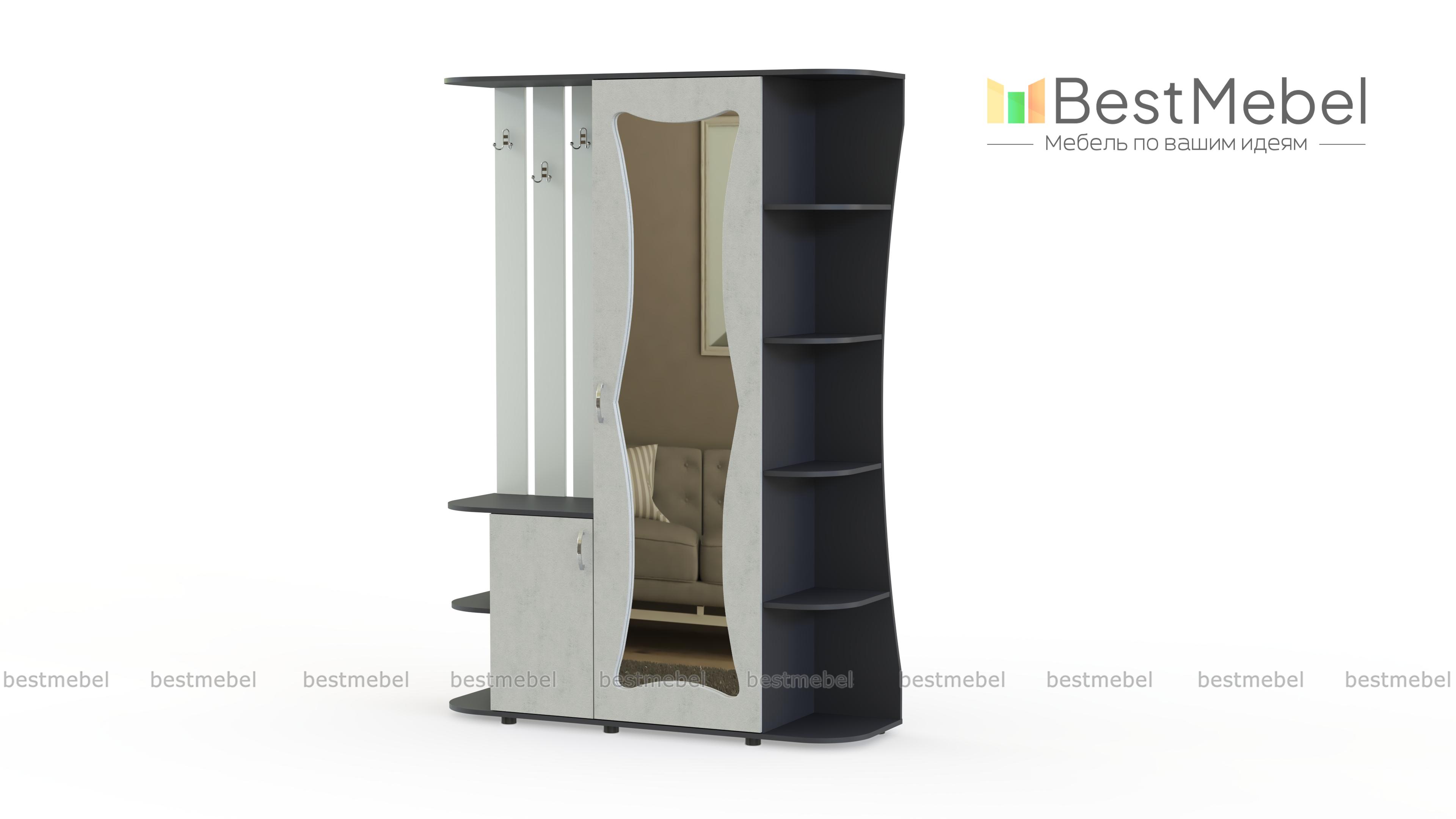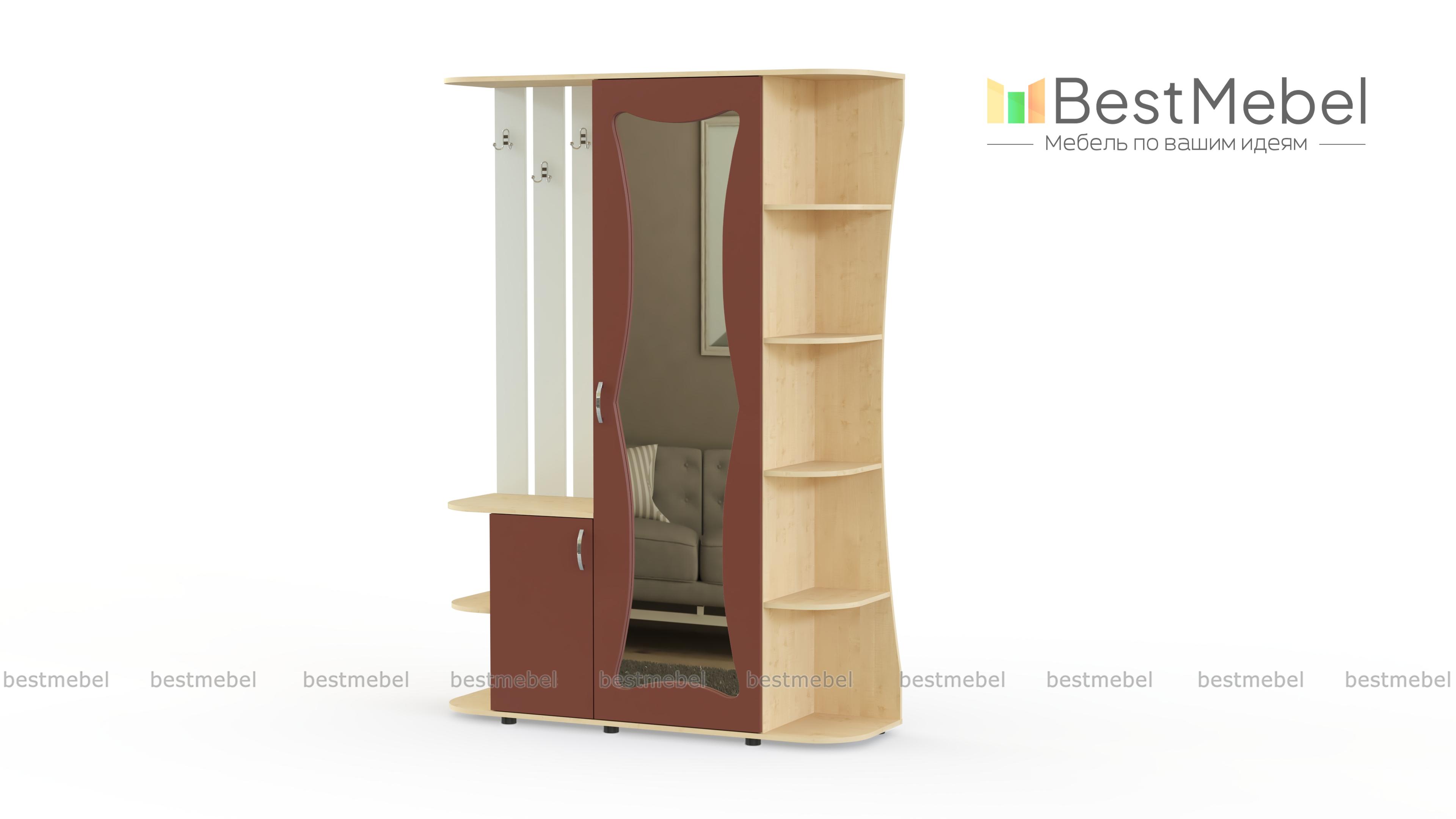 Прихожая Гамма МДФ BMS с фигурно вырезанным зеркалом на фасаде поможет оформить небольшое помещение в классическом стиле. Однодверный платяной шкаф дополняют открытая вешалка, распашная тумба и радиусные полки для хранения аксессуаров, уходовых средств и прочих важных мелочей. Плавно скругленные углы безопасны и придают прихожей элегантный вид. Купить прихожую Гамма МДФ BMS вы сможете в нашем интернет-магазине, подобрав наиболее подходящее цветовое решение.