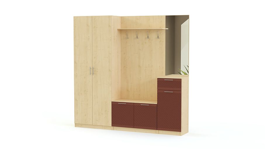 Стенка прихожая «Футурино 7» BMS – элегантное дополнение классического интерьера. В комплект входят открытая панель с вешалками и низкой тумбой, высокая тумба с зеркалом и двухстворчатый платяной шкаф. Практичная конструкция позволит вписать стенку даже в небольшие помещения. Особенную привлекательность модели придают яркие рельефные фасады тумб с эргономичными ручками. Купить стенку прихожую «Футурино 7» BMS вы сможете недорого в нашем интернет-магазине.