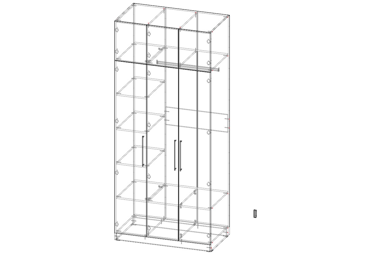 Современный дизайн и стильная фурнитура придают шкафу изысканный вид, делая его не только функциональной, но и декоративной частью интерьера.Шкаф оснащен просторными полками, штангой для вешалок, что обеспечивает удобную организацию пространства и позволяет легко поддерживать порядок.Выполнен в белом цвете со стильными черными ручками.