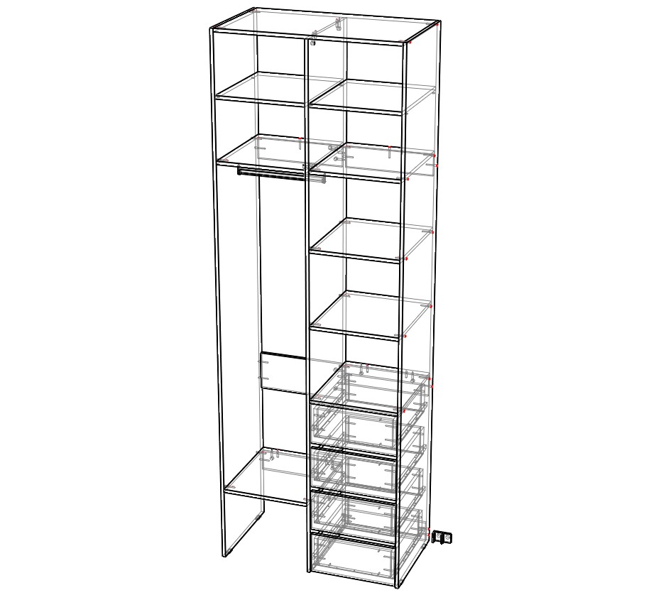 Стеллаж для одежды Мирта 2 BMS поможет вам организовать хранение дома или в торговом зале. Открытая конструкция со штангой, полками и рядом из четырех выдвижных ящиков подходит для размещения одежды на вешалках, коробок с обувью и мелкого трикотажа. Материал изготовления – устойчивая к износу и долговечная ламинированная плита в темном цвете орех. Направляющие на ящиках с доводчиком. кромка усиленная.