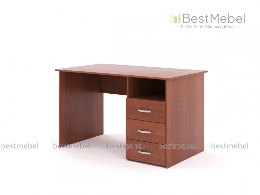 Стол письменный С112 BMS - это классическая модель с широкой прямоугольной столешницей и тумбой справа. Размеры рабочей поверхности позволяют разместить ноутбук и принадлежности для письма, а для бумаг и канцелярских мелочей предназначены три выдвижных ящика и ниша. Широкая цветовая палитра поможет максимально гармонично вписать стол в интерьер. Купить стол письменный С112 BMS приглашаем в наш интернет-магазин, подобрав фурнитуру и цвет по каталогу.
