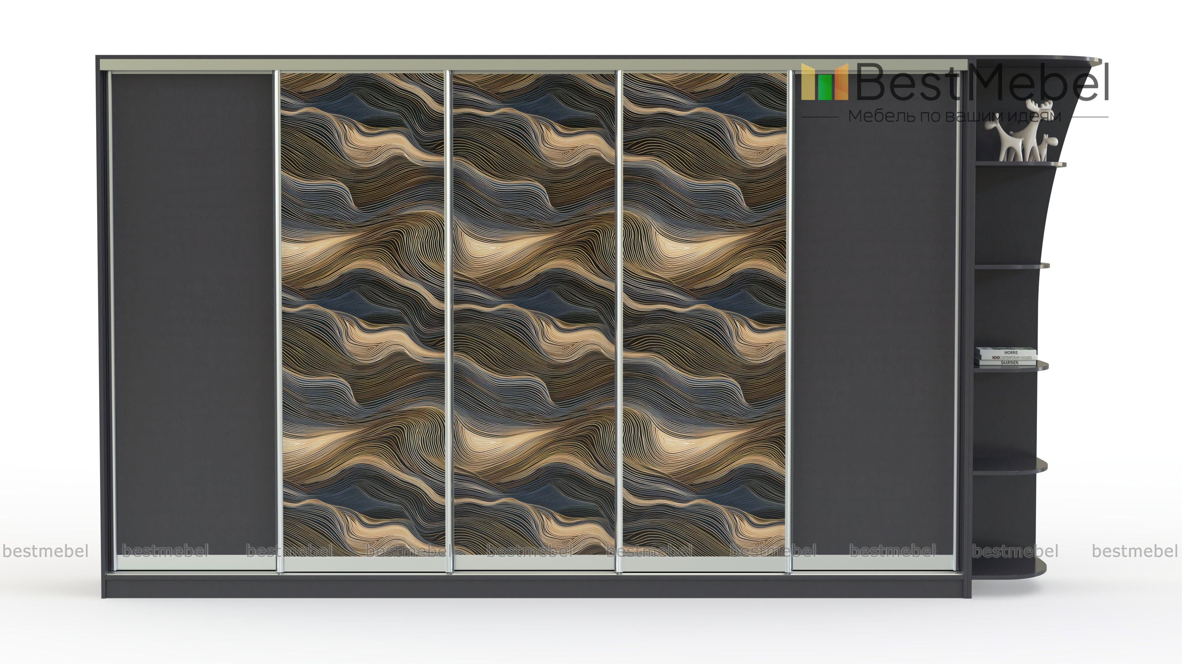 Шкаф-купе Блэк 157 BMS выполнен в нейтральных тонах, а волнообразный принт придает лаконичному дизайну выразительность. Разноплановые внутренние отделения пятидверной модели гарантируют, что вы сможете удобно расположить всю необходимую одежду и постельное белье, а для книг и бытовых мелочей предусмотрен торцевой стеллаж. Скругленный угловой элемент делает пользование безопасным. Купить шкаф-купе Блэк 157 BMS вы сможете в нашем интернет-магазине с выбором цвета и размеров.