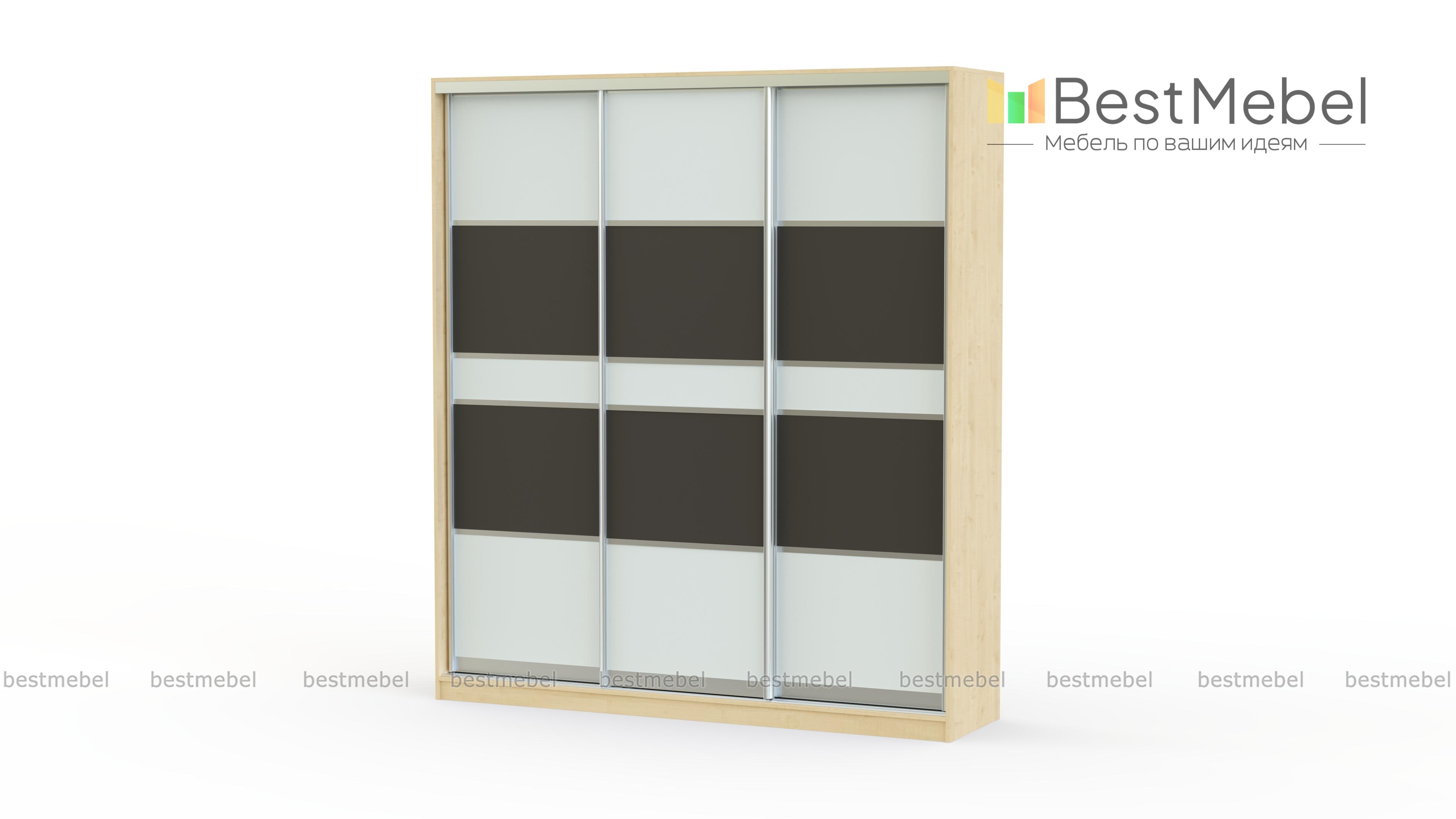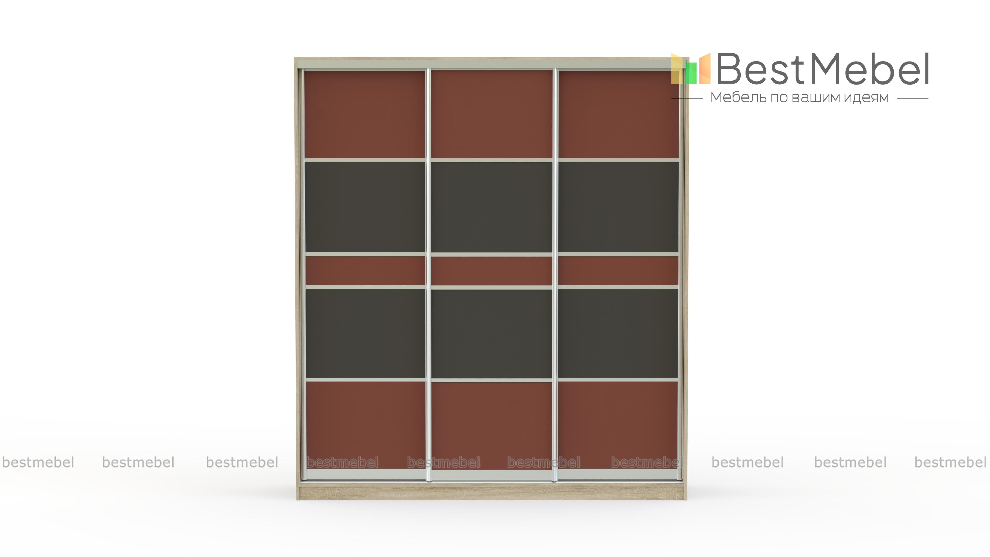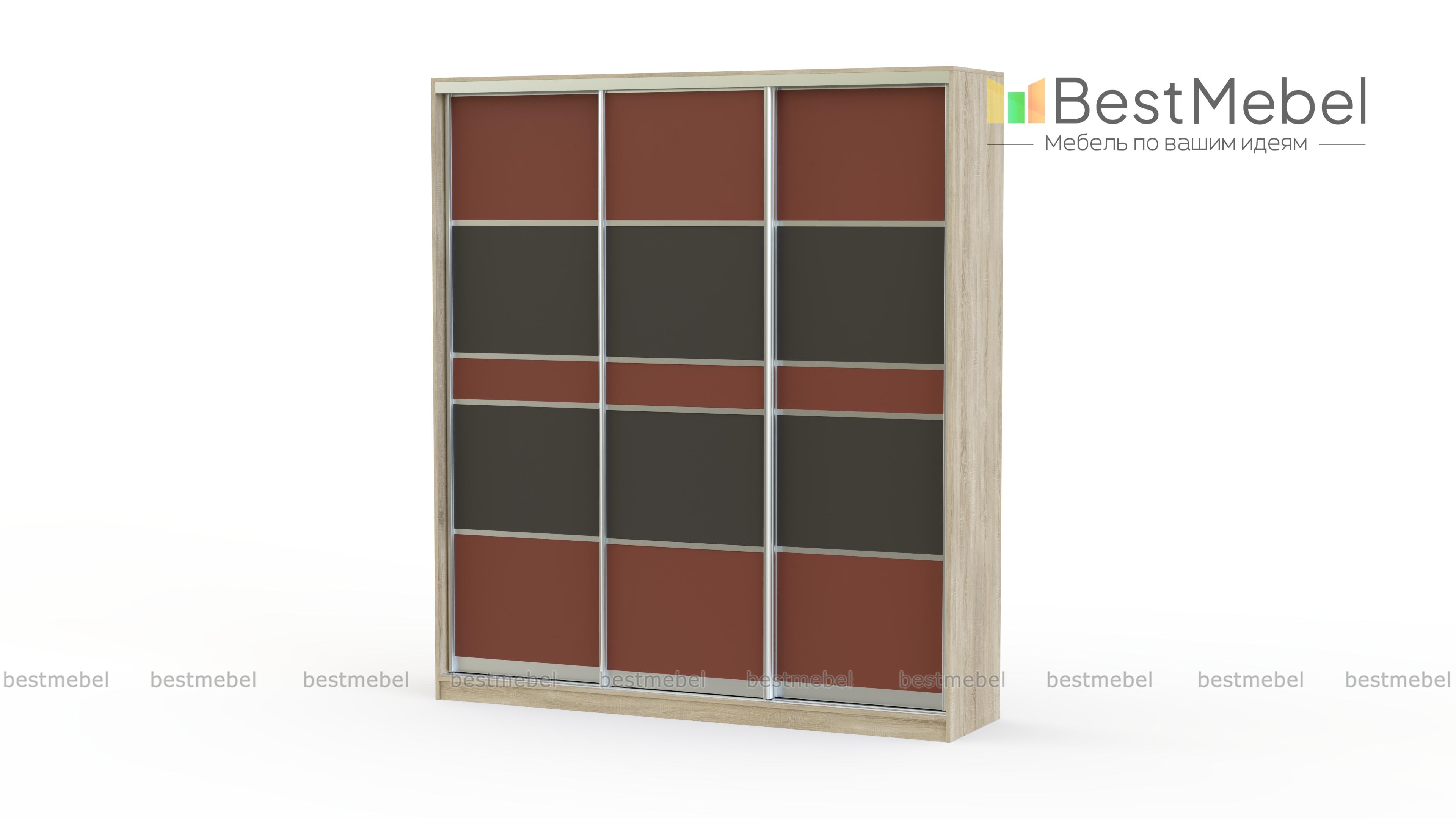 Презентабельный трехдверный шкаф-купе Премиум 220В BMS изготавливается из ДСП одного из представленных в каталоге цветов на выбор. Внутри шкаф комплектуется просторными полками, хромированной штангой для вешалок, дополнительно возможно измененить наполнение на Ваш вкус. Дизайн фасада позволяет комбинировать несколько материалов для оформления.