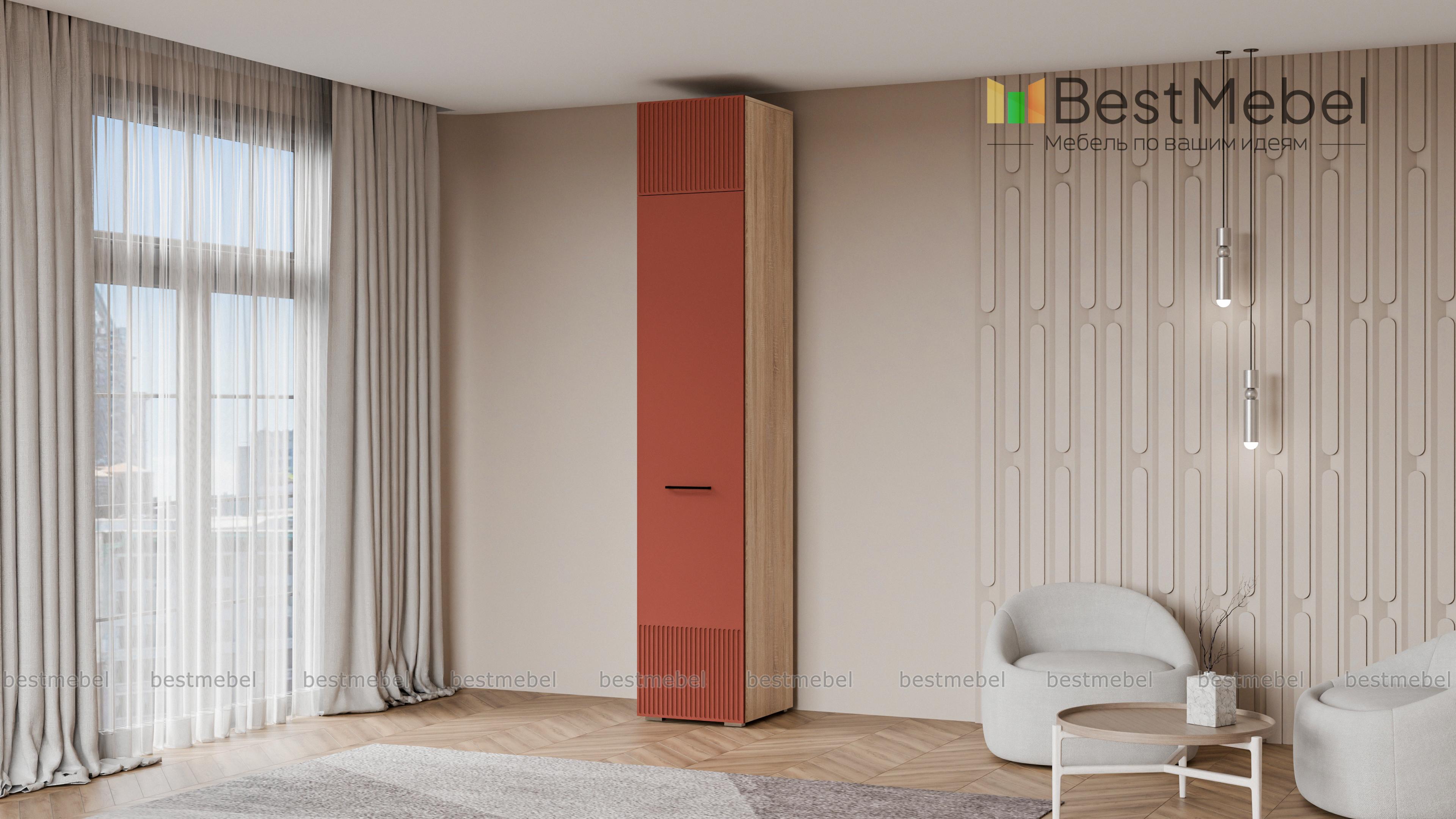 Шкаф распашной Декарт 7 BMS с одной дверцей и антресолью подходит для самых разных помещений. Высокий узкий шкаф с простым и выразительным благодаря фрезеровке дизайном оснащен необходимой для размещения вешалок с одеждой перекладиной и полочкой. Дополнительный отсек сверху значительно увеличивает пространство для хранения. Купить шкаф распашной Декарт 7 BMS вы сможете недорого в нашем интернет-магазине, подобрав подходящие именно вам цвета и размеры.