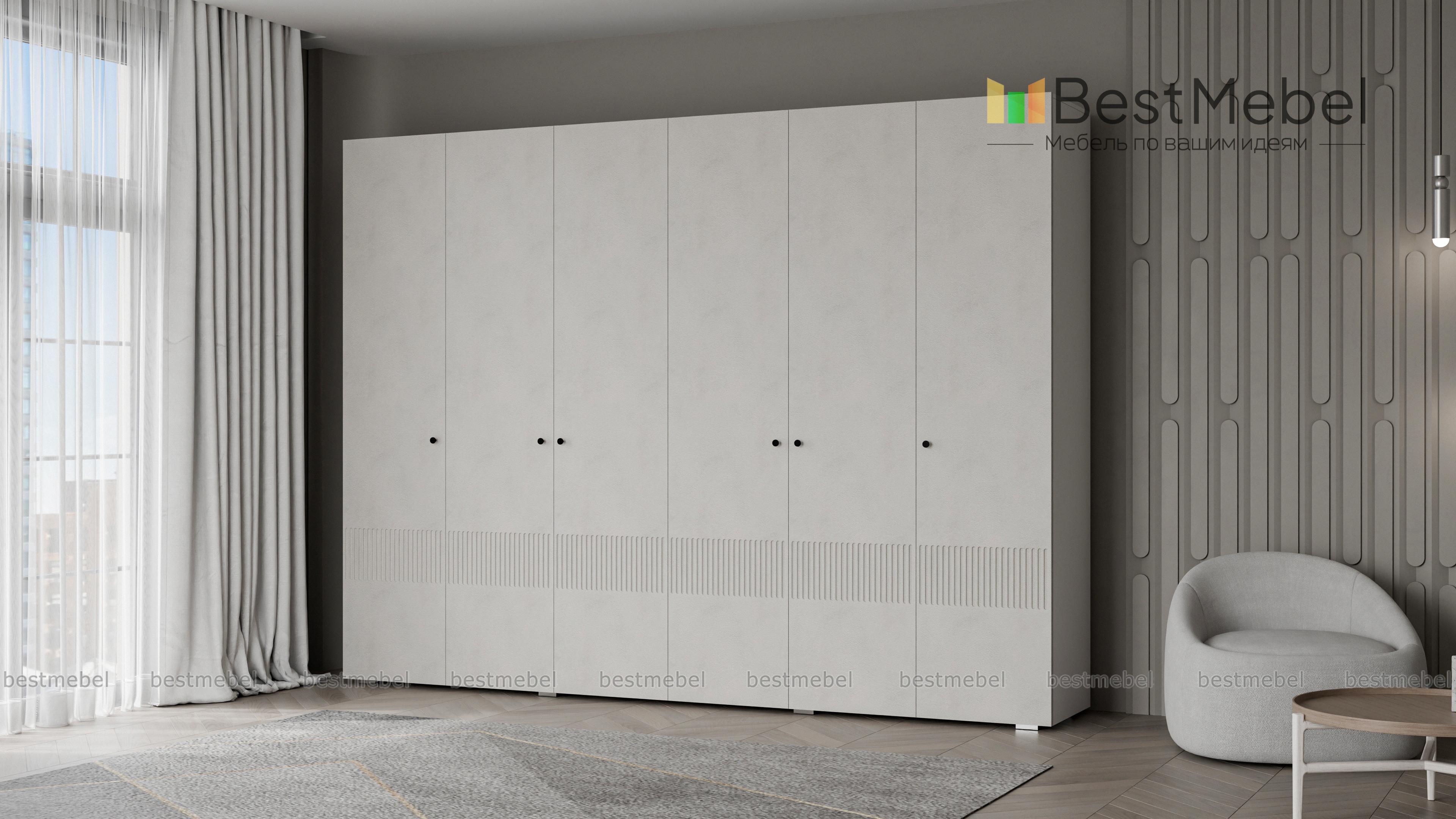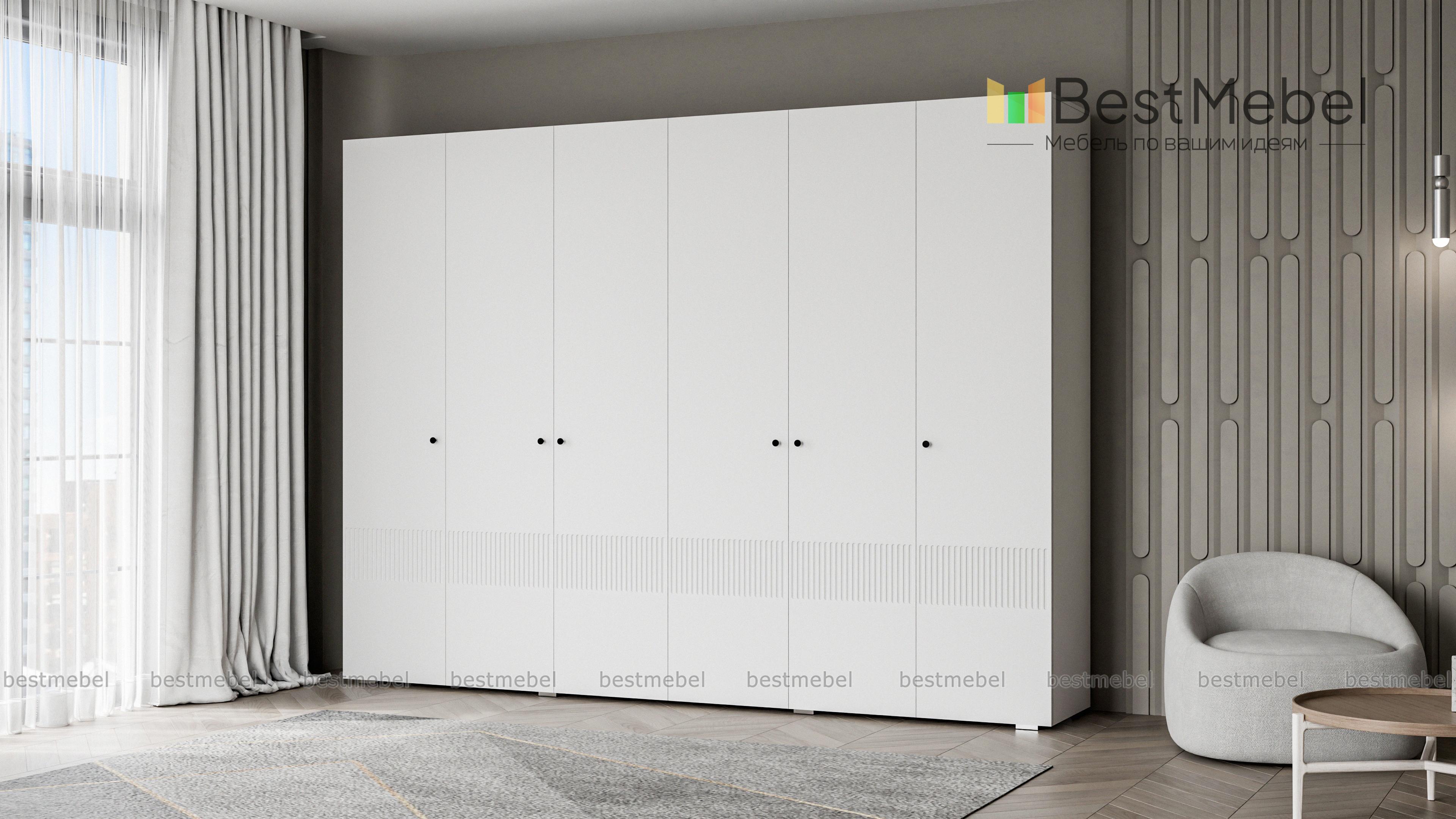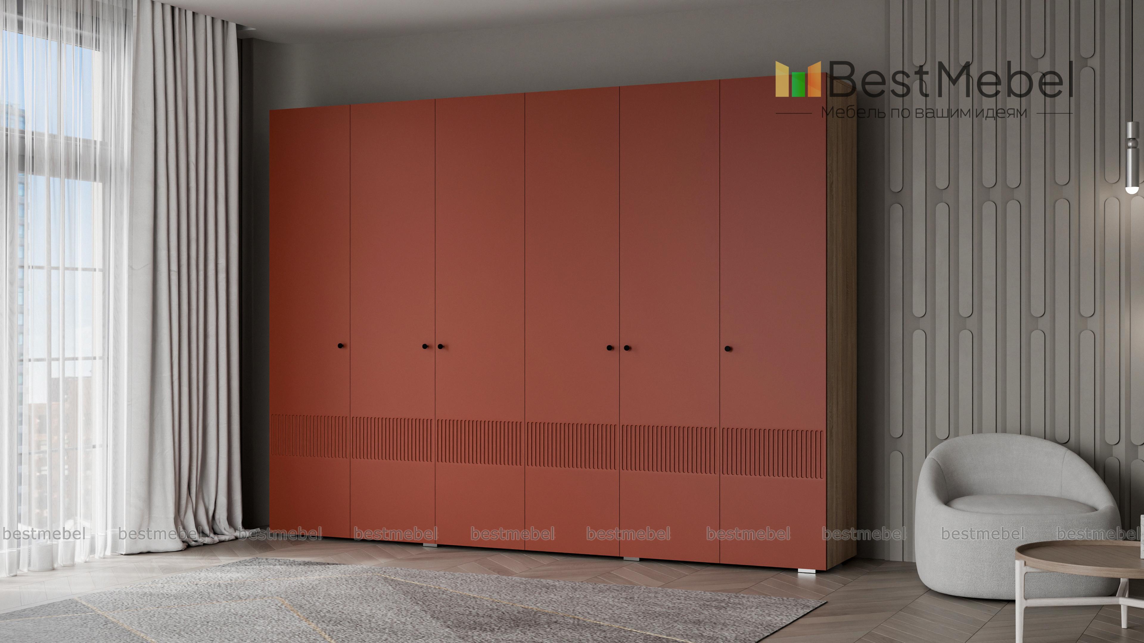 Шкаф распашной Джосс 6 BMS отличается простыми строгими линиями и актуальным декором. Шестидверный шкаф со сплошным цветным фасадом и фрезеровкой прекрасно подходит для спален, прихожих и детских. Два просторных отделения с платяными штангами и верхними полками дополнены однодверными секциями для хранения сложенной одежды и белья. Купить шкаф распашной Джосс 6 BMS вы сможете в нашем интернет-магазине, подобрав размеры, наполнение и подходящую цветовую гамму.