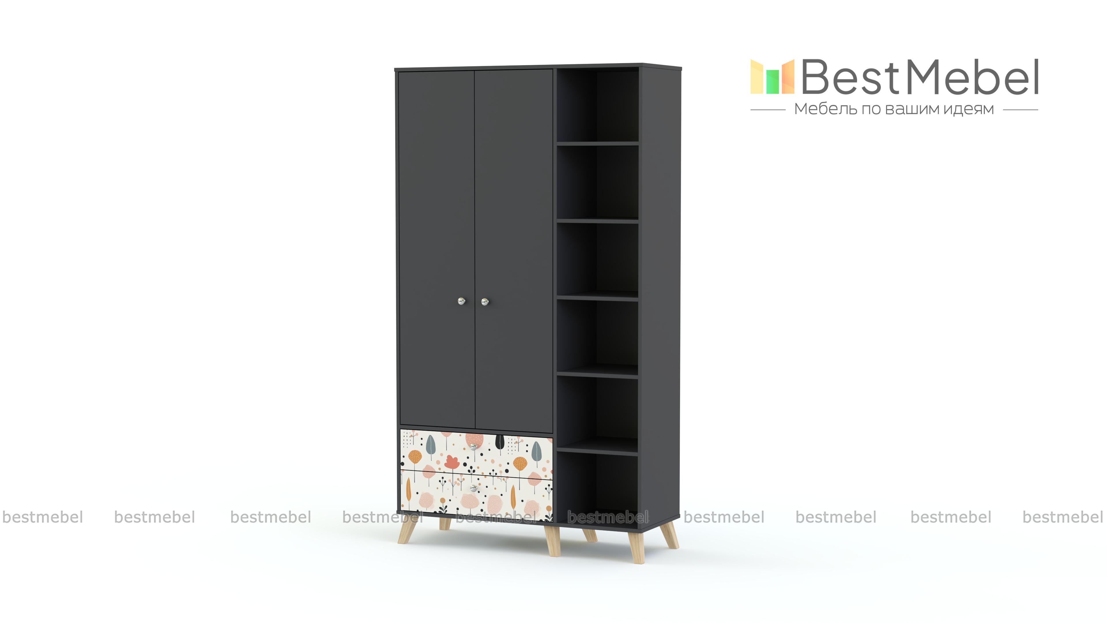 Шкаф распашной Эльза 4 BMS с высокими ножками гармонично смотрится даже в маленькой комнате. Система хранения включает в себя отделение со штангой, два выдвижных ящика и стеллаж, на полках которого будут на виду книги, игрушки, органайзеры с мелочами. Теплая природная гамма делает интерьер уютнее, а в качестве декора использован нежный рисунок-фотопечать. Купить шкаф распашной Эльза 4 BMS вы сможете в нашем интернет-магазине, подобрав размеры, цвет и фурнитуру.