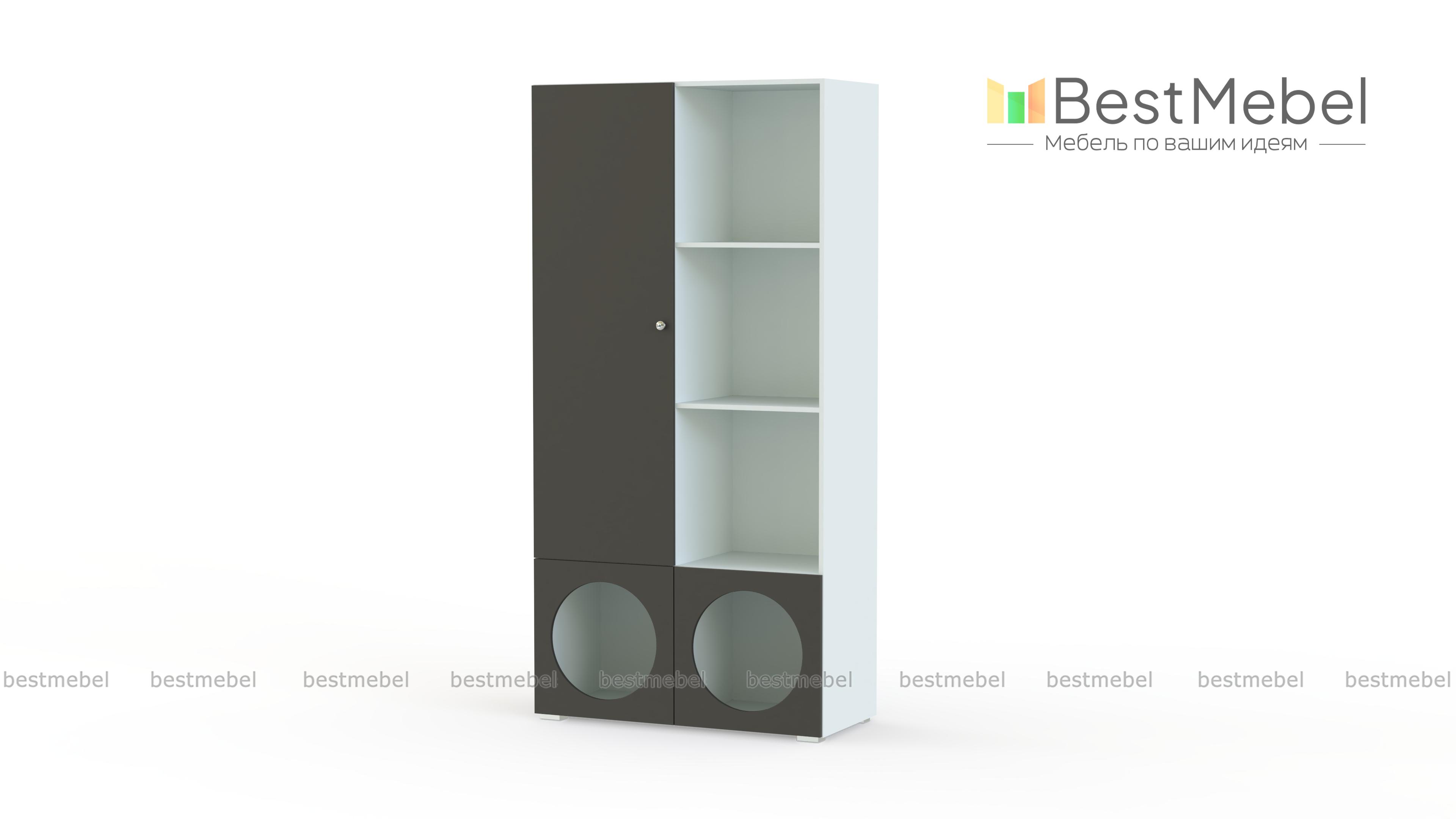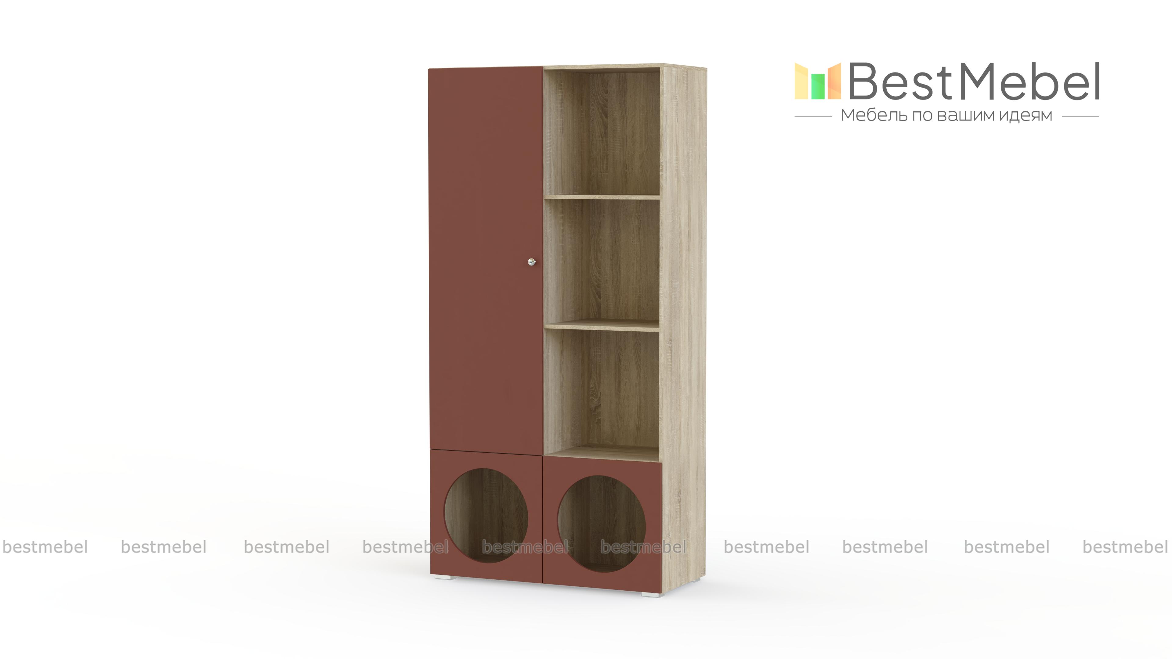 Стеллаж Авелин 7 BMS имеет простой современный дизайн, который будет актуален долгие годы. Корпус с полками древесного оттенка закрывают лаконичные гладкие фасады из МДФ. Полки на любой вкус: за распашной дверцей, открытые и оформленные в отсеки с необычными круглыми вырезами помогут подростку с аккуратным хранением личных вещей. Купить стеллаж Авелин 7 BMS вы всегда сможете в нашем интернет-магазине, подобрав размеры и цветовую гамму для корпуса и фасадов.