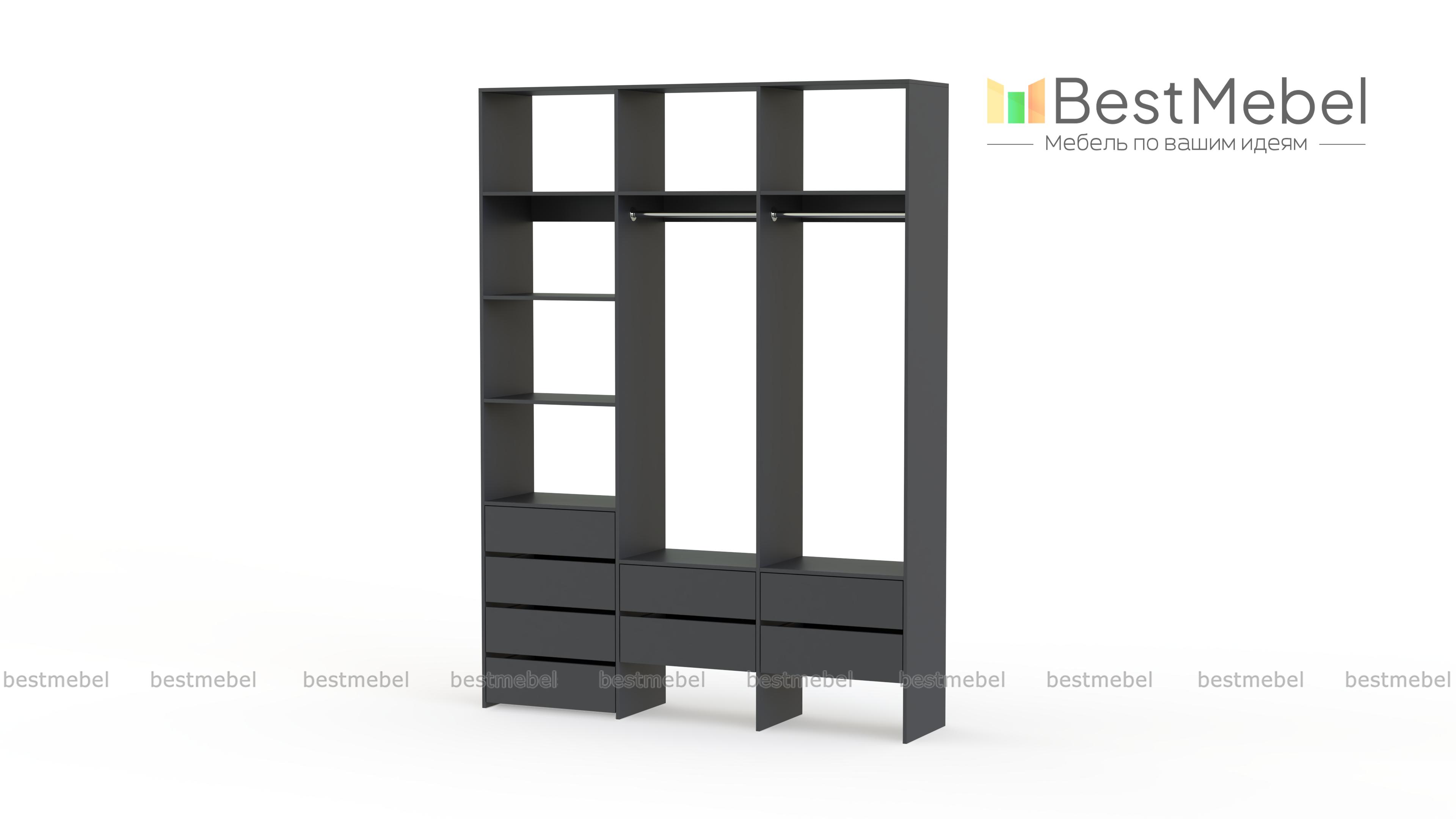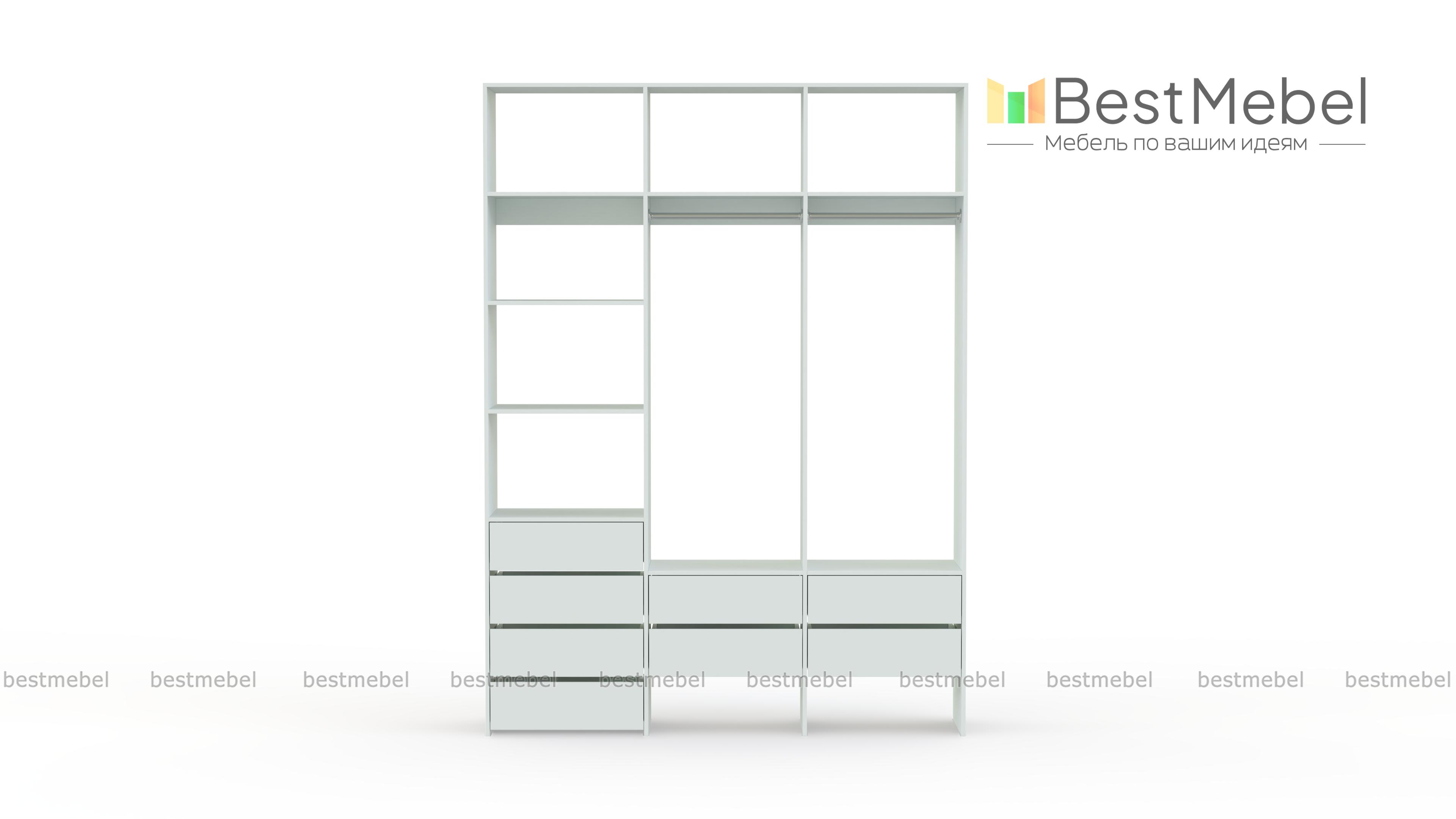 Стеллаж для одежды Мирта 54 BMS станет частью современной прихожей или гардеробной. Конструкция из ламинированной плиты имеет универсальный дизайн, надежна и функциональна. Система хранения трехсекционного стеллажа включает в себя две платяные штанги, ящики для белья и мелочей, ряд верхних и боковых полок, а пространство под ящиками можно использовать для размещения обуви. Купить стеллаж для одежды Мирта 54 BMS приглашаем в наш интернет-магазин, подобрав нужные размеры и цвет по каталогу.