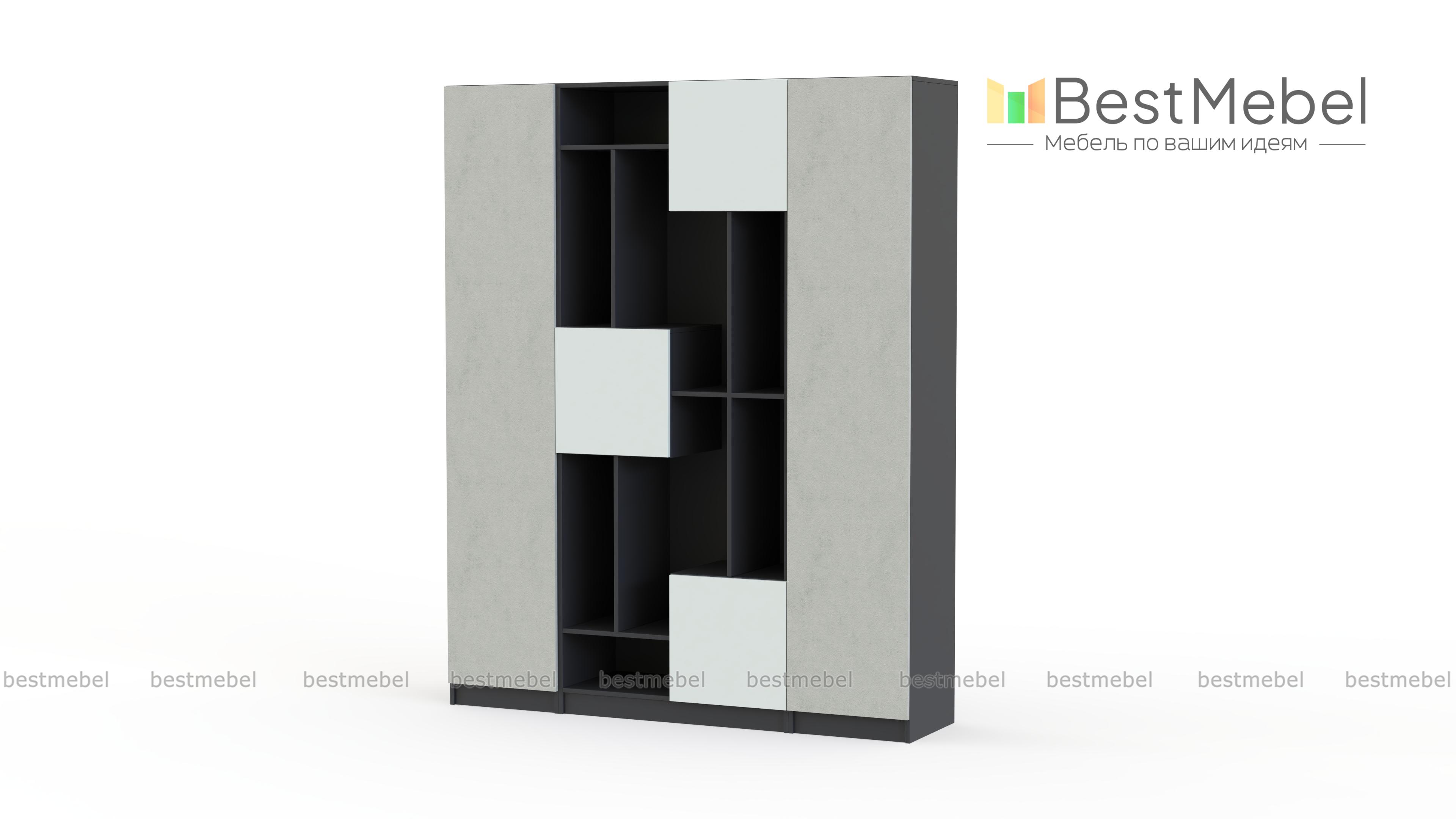 Стеллаж Флай 24 BMS отличается особенной вместительностью за счет комбинированной конструкции и визуальной легкостью. Стильная композиция объединила стеллаж с открытыми секциями разной высоты и тремя глухими распашными отделениями и два симметрично расположенных бельевых пенала. Сочетание светлых тонов с белым и черным глянцем сделает комнату просторнее и светлее. Купить стеллаж Флай 24 BMS приглашаем на наш сайт с подбором цвета и фурнитуры.