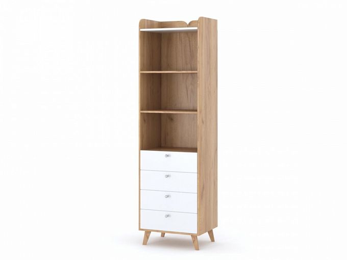 Стеллаж Райт 5 BMS гармонично впишется в популярные скандинавские интерьеры и компактно разместит книги, декоративные предметы и множество мелочей. Компактная по ширине модель оборудована четырьмя глубокими выдвижными ящиками с ручками-кнопками и тремя открытыми полками, устойчивость конструкции придают высокие скошенные опоры. В оформлении стеллажа скомбинированы теплые древесные тона и белый. Купить стеллаж Райт 5 BMS вы сможете на сайте нашего интернет-магазина.