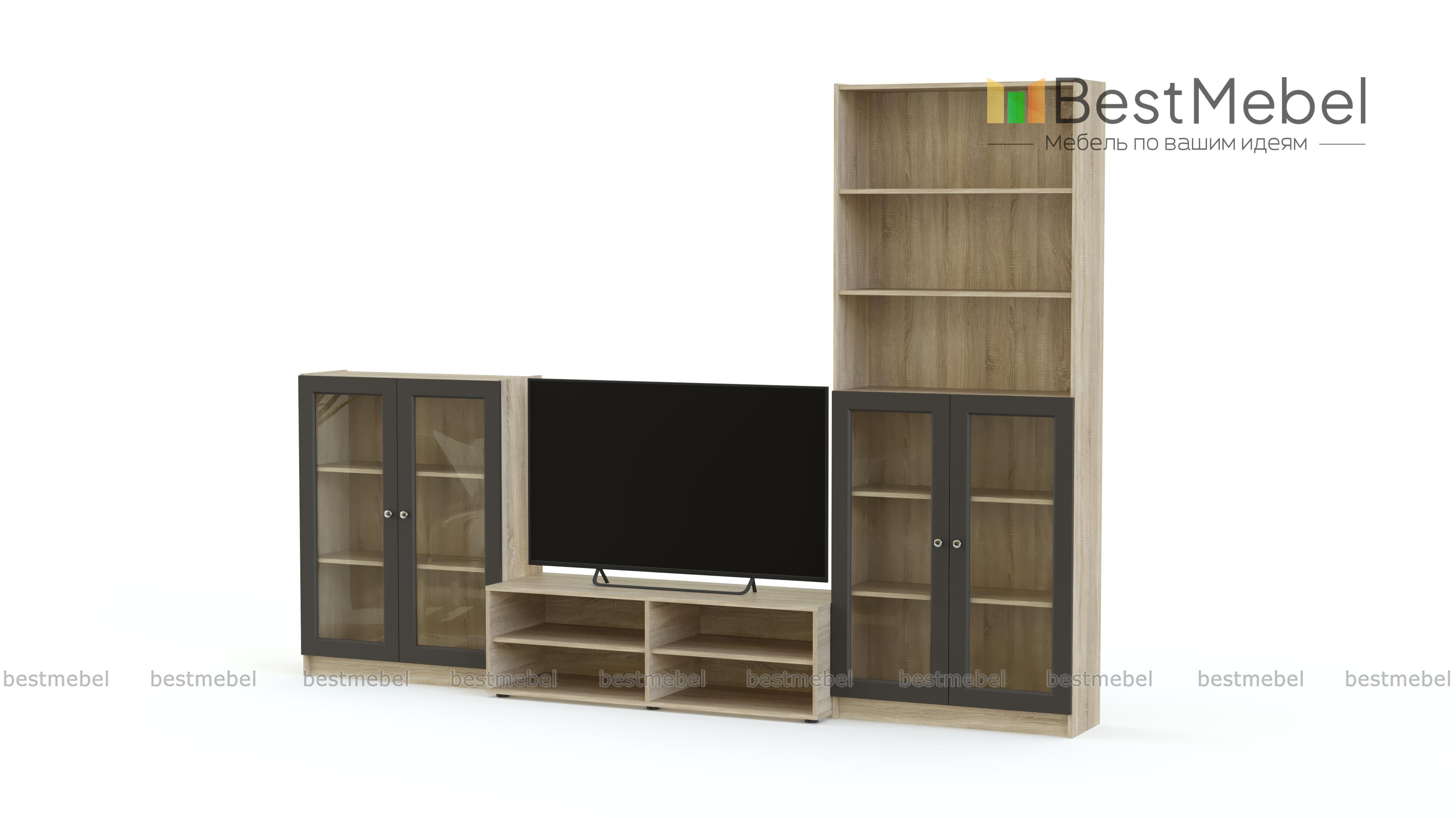 Стенка Билли Бесто Billy Besta 1 позволит вам не только оформить телезону, но и продемонстрировать любимые вещи. Домашняя библиотека, коллекция, красивый сервиз и памятные мелочи будут на виду благодаря открытым и застекленным полкам. Модульная стенка для гостиной в современной стилистике включает в себя тумбу под ТВ, распашную витрину и комбинированный с витриной стеллаж. Купить стенку Билли Бесто Billy Besta 1 вы сможете в нашем интернет-магазине с выбором цвета по каталогу. Выбирайте мебель в стиле IKEA (ИКЕА) от производителя BestMebelShop!
