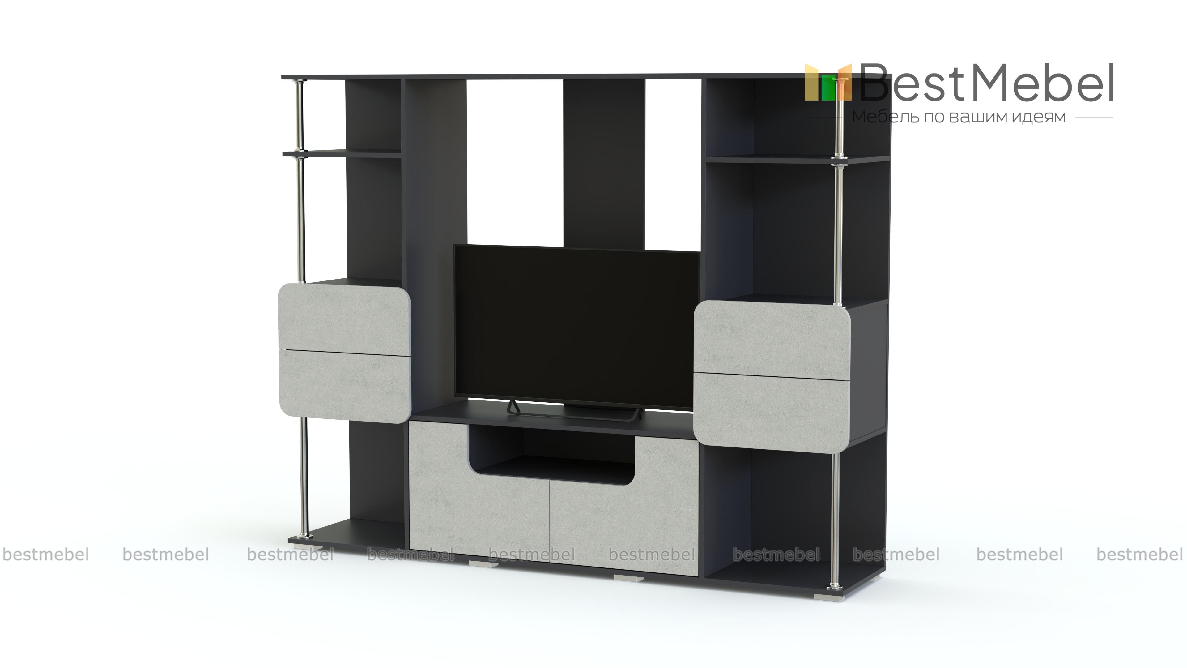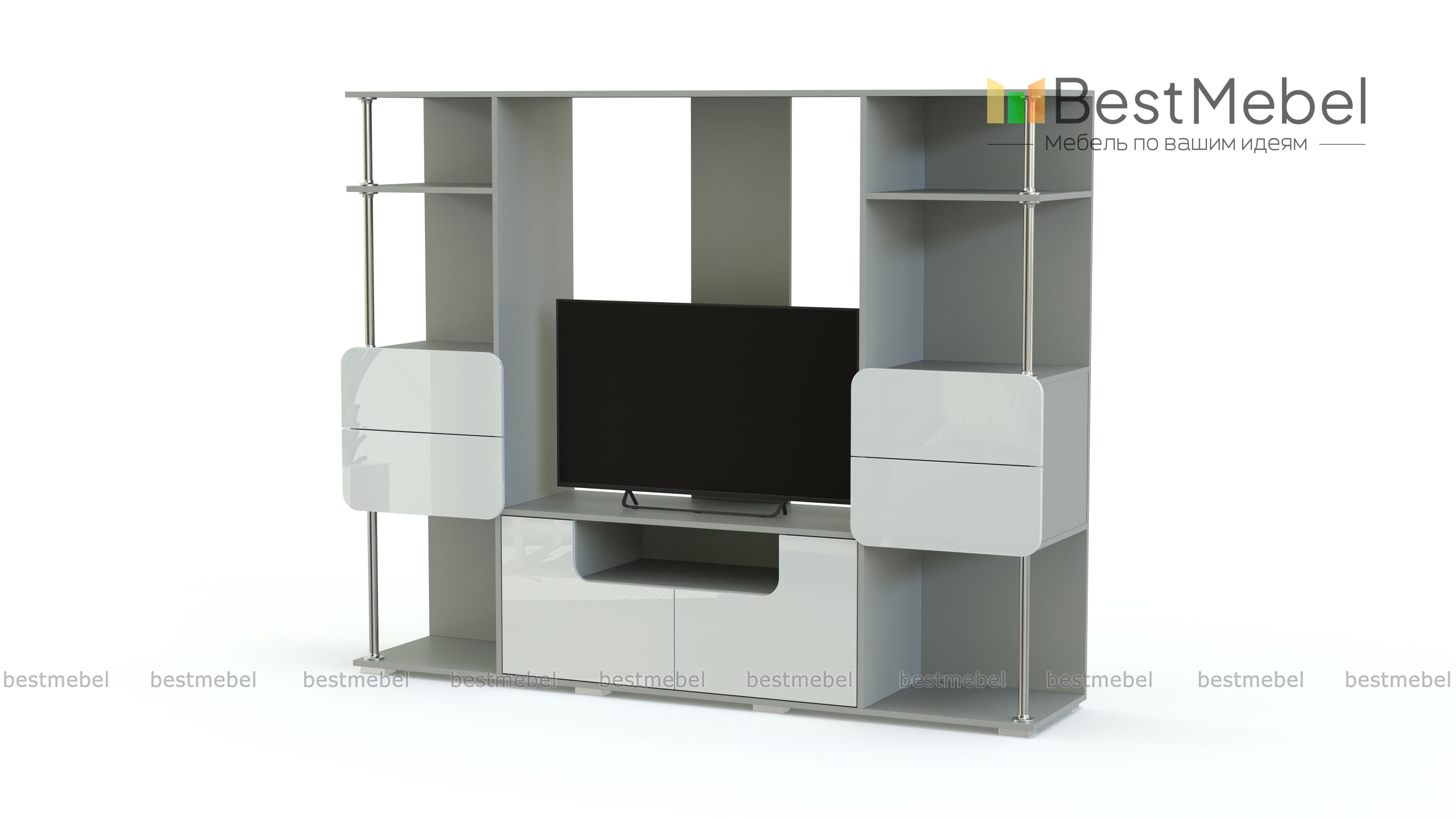 Стенка МБ-7.1 BMS гармонично впишется в небольшие гостиные и студии благодаря компактным размерам и визуальной легкости. Модель современного дизайна с матовыми закругленными фасадами дополнит интерьеры в стиле минимализм и разместит ТВ, книги, предметы декора и разнообразные бытовые мелочи. Мини-стенка расположена на подиумном основании и оборудована тумбой с распашными отделениями и комбинированными стеллажами с открытыми полками и выдвижными ящиками на хромированных опорах. Купить стенку МБ-7.1 BMS по доступной цене приглашаем в наш интернет-магазин.