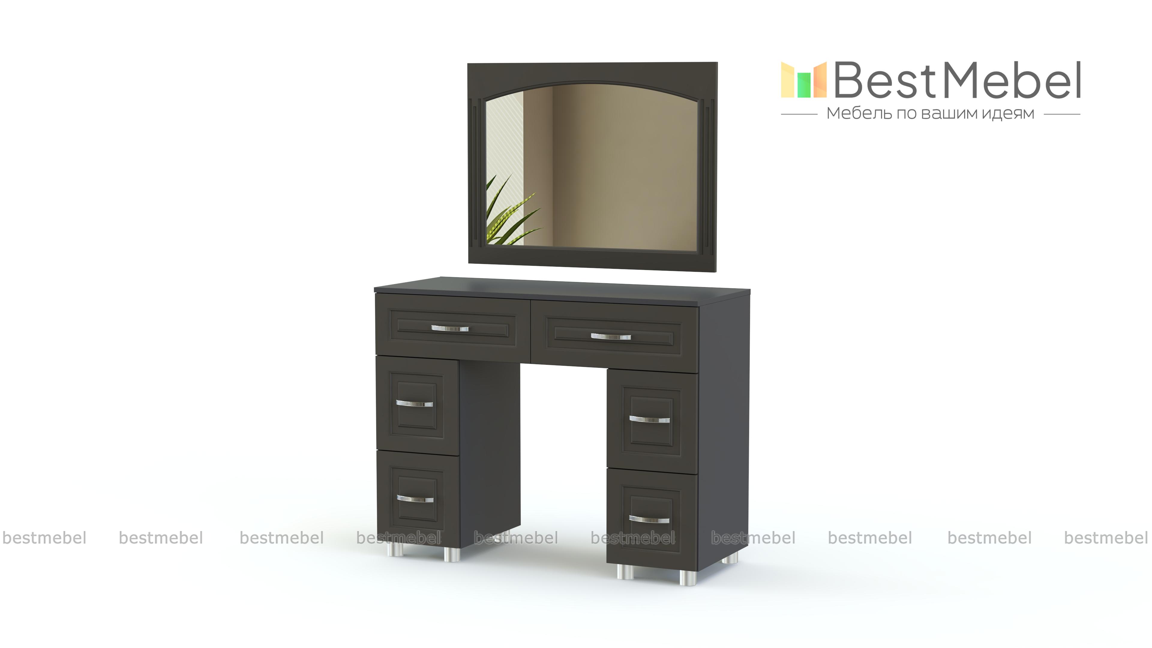 Туалетный стол Элизабет Композиция 2 BMS – это двухтумбовая модель с широкой столешницей, двумя большими и четырьмя малыми выдвижными ящиками. Дополненный навесным зеркалом в элегантной раме, столик сделает уход за собой комфортным и украсит спальный интерьер. Выполненная в универсальных светлых тонах, модель декорирована классической рамочной фрезеровкой и располагается на регулируемых пластиковых ножках. Купить туалетный стол Элизабет Композиция 2 BMS приглашаем в наш интернет-магазин.