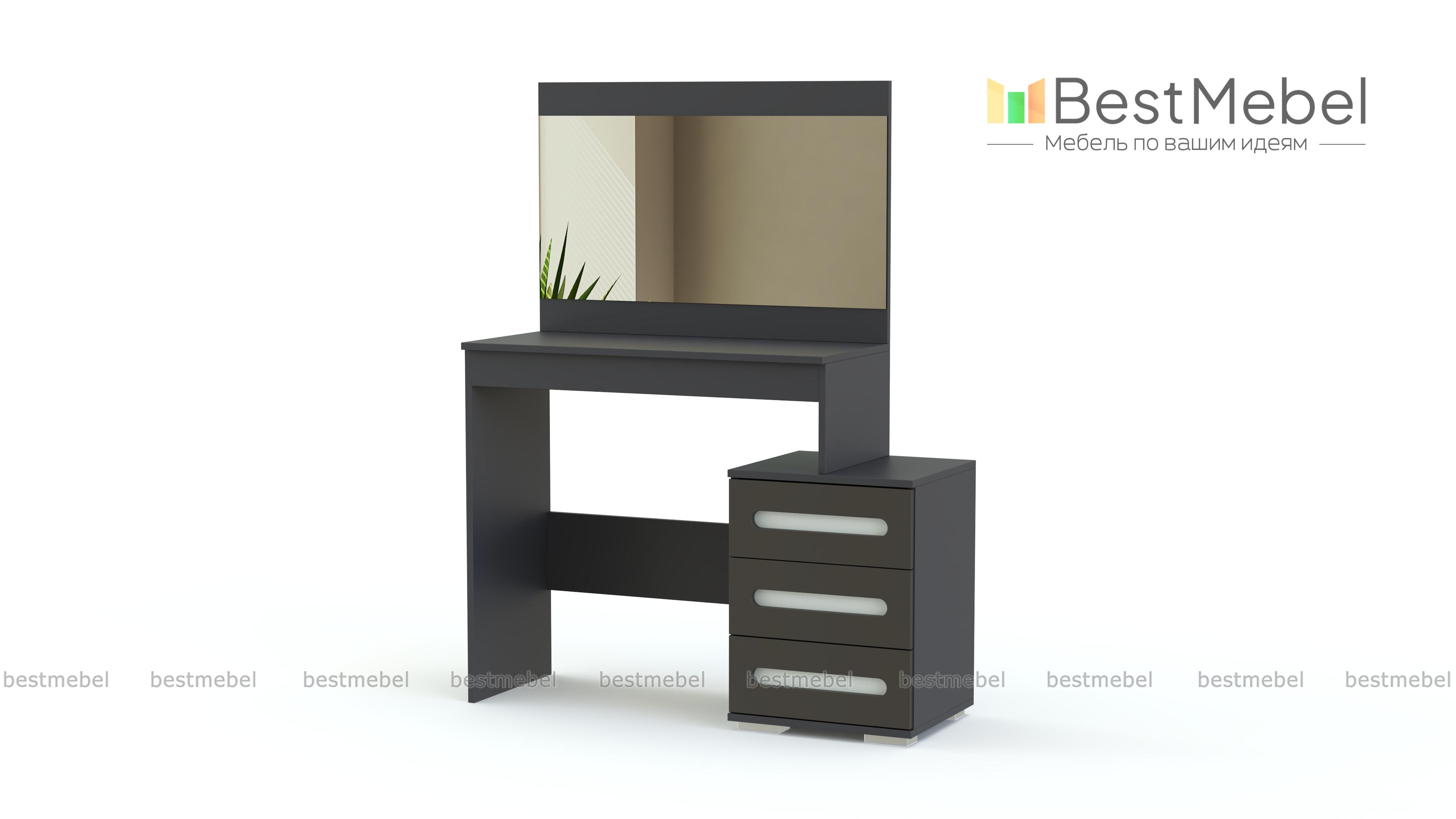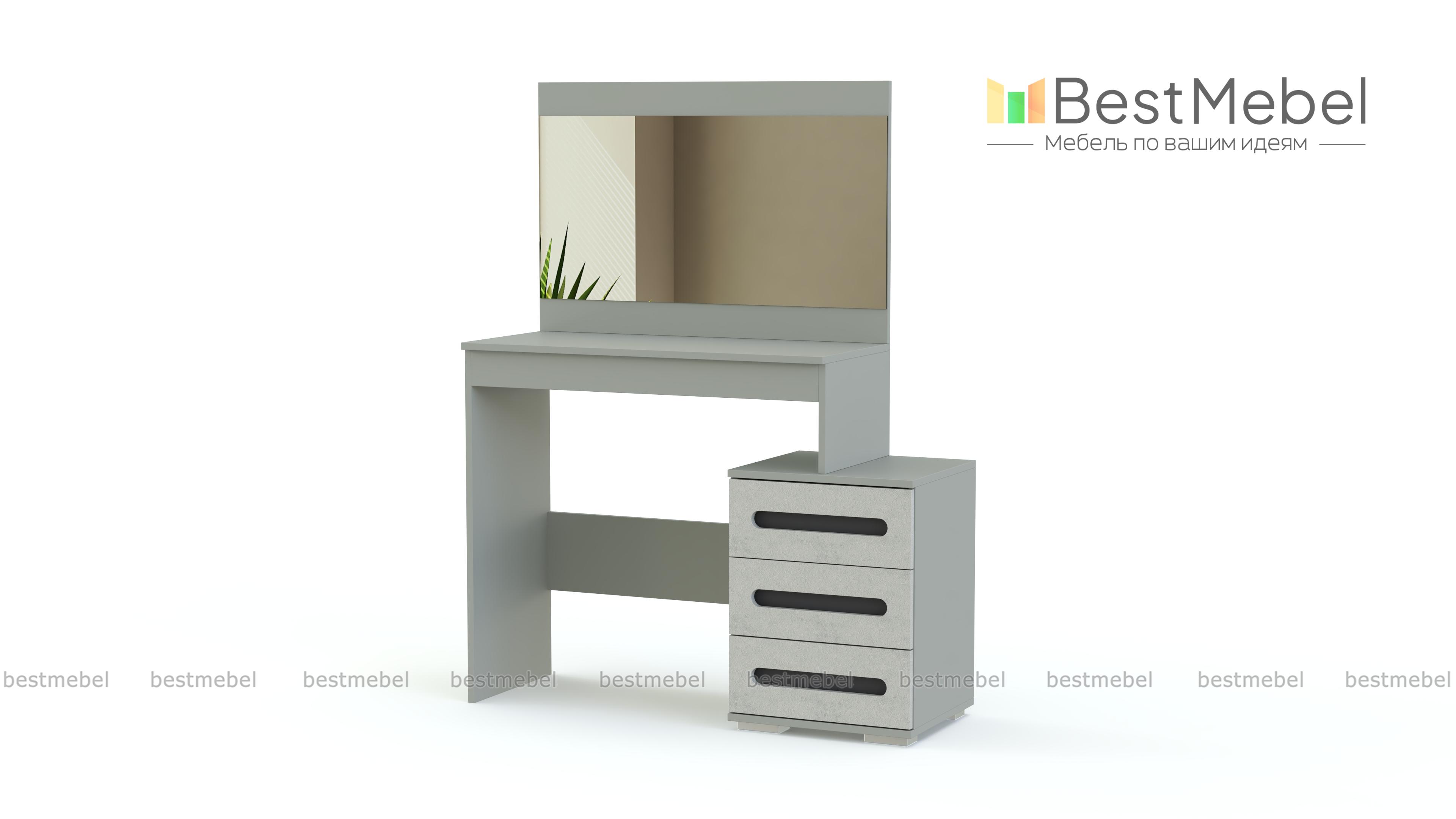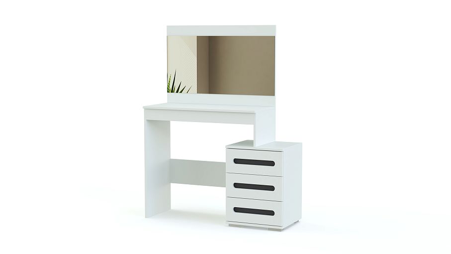 Туалетный столик Аризона BMS эффектно дополнит интерьер в современном стиле. Столик изготовлен в универсальном светлом оттенке, который великолепно сочетается с черной вставкой на фасадах выдвижных ящиков. Широкое зеркало станет незаменимым помощником в нанесении макияжа и уходе за волосами, а три вместительных ящика и широкая столешница без труда разместят декоративную косметику, аксессуары и приятные мелочи. Купить недорого с возможностью изменения размера и фурнитуры туалетный столик Аризона BMS приглашаем на наш сайт.