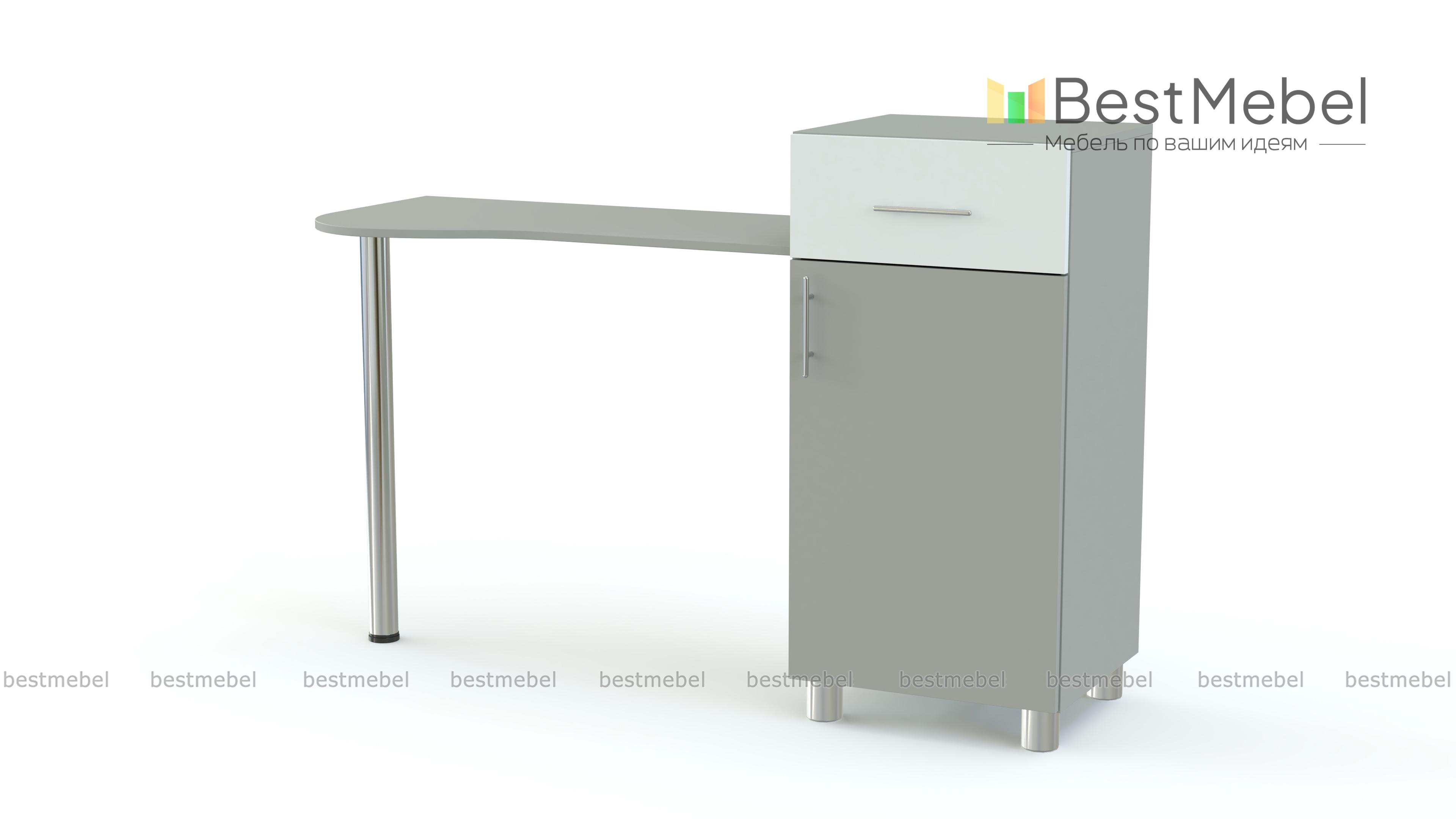Туалетный столик Мелисса СТ 114 BMS станет приятным дополнением интерьера современной спальни. Конструкция представляет собой комбинацию изящной столешницы с эргономичным передним краем и вместительной тумбы. Оборудованная выдвижным ящиком и распашным отделением с полкой, тумба позволит хранить под рукой все необходимые аксессуары и уходовые средства. Стильные элементы дизайна – фасады и хромированные опоры. Купить туалетный столик Мелисса СТ 114 BMS вы сможете недорого в нашем интернет-магазине, подобрав цветовое решение.