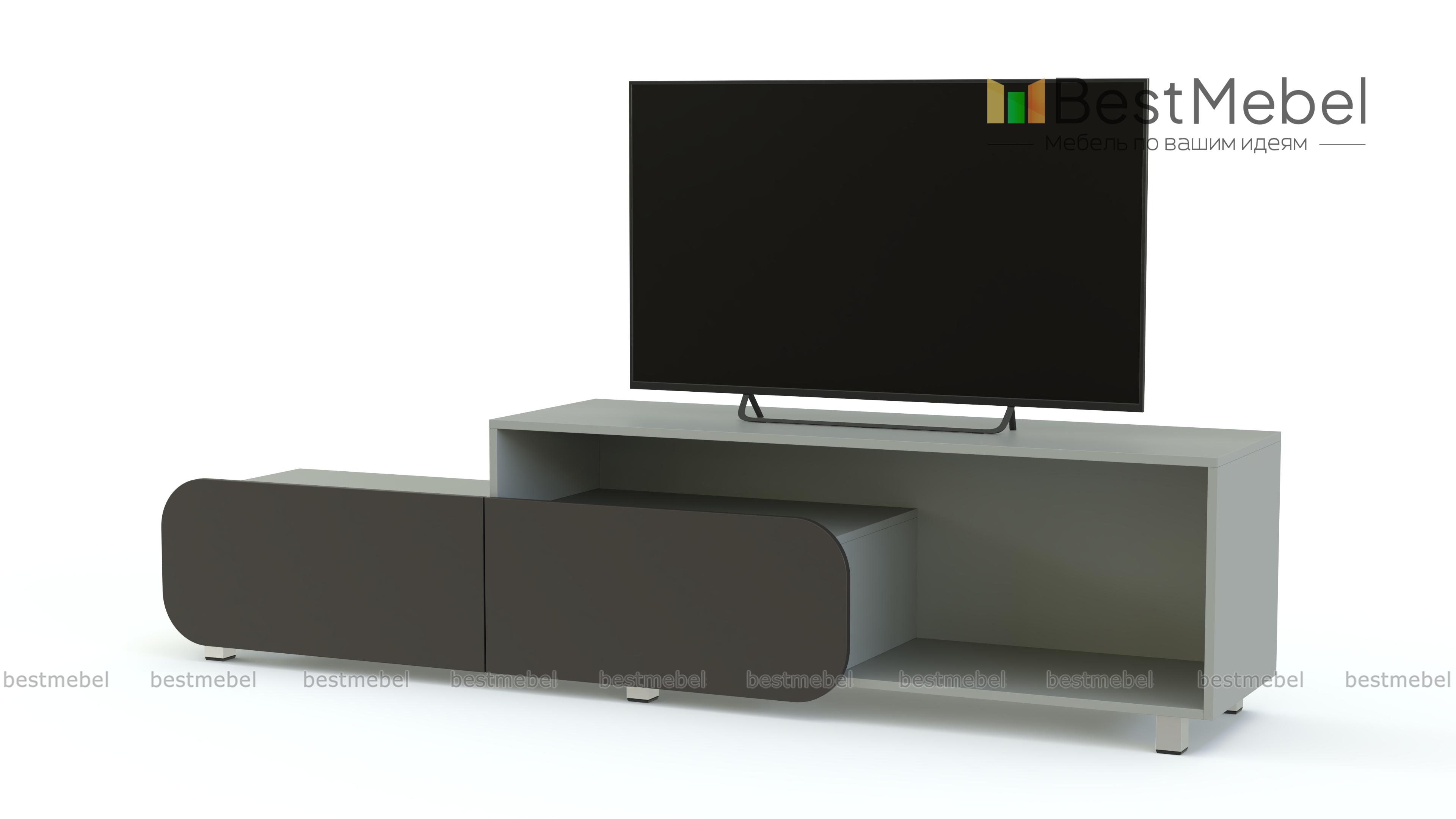 Тумба под ТВ Модерно 6.1 BMS - необычная модель в современном стиле для яркого и функционального интерьера. Вместительная тумба состоит из двух секций – открытой просторной полки и элемента с двумя выдвижными ящиками. Продуманная конструкция позволит эффектно разместить ТВ, книги, предметы декора и многое другое. Оптимальное цветовое сочетание корпуса и матовых фасадов вы сможете подобрать самостоятельно. Купить тумбу под ТВ Модерно 6.1 BMS по доступной цене приглашаем в наш интернет-магазин.