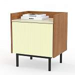 Тумба прикроватная Николь 11 BMS - практичное дополнение и яркий штрих в интерьере современной спальни. Модель с цветным фактурным фасадом и корпусом древесного оттенка дополнена металлическим каркасом с высокими ножками. Бортики на столешнице не дадут упасть мелочам, а для хранения книг, уходовых принадлежностей и аксессуаров тумба оборудована вместительным распашным отделением. Купить тумбу прикроватную Николь 11 BMS вы сможете в нашем интернет-магазине, подобрав цветовую гамму.