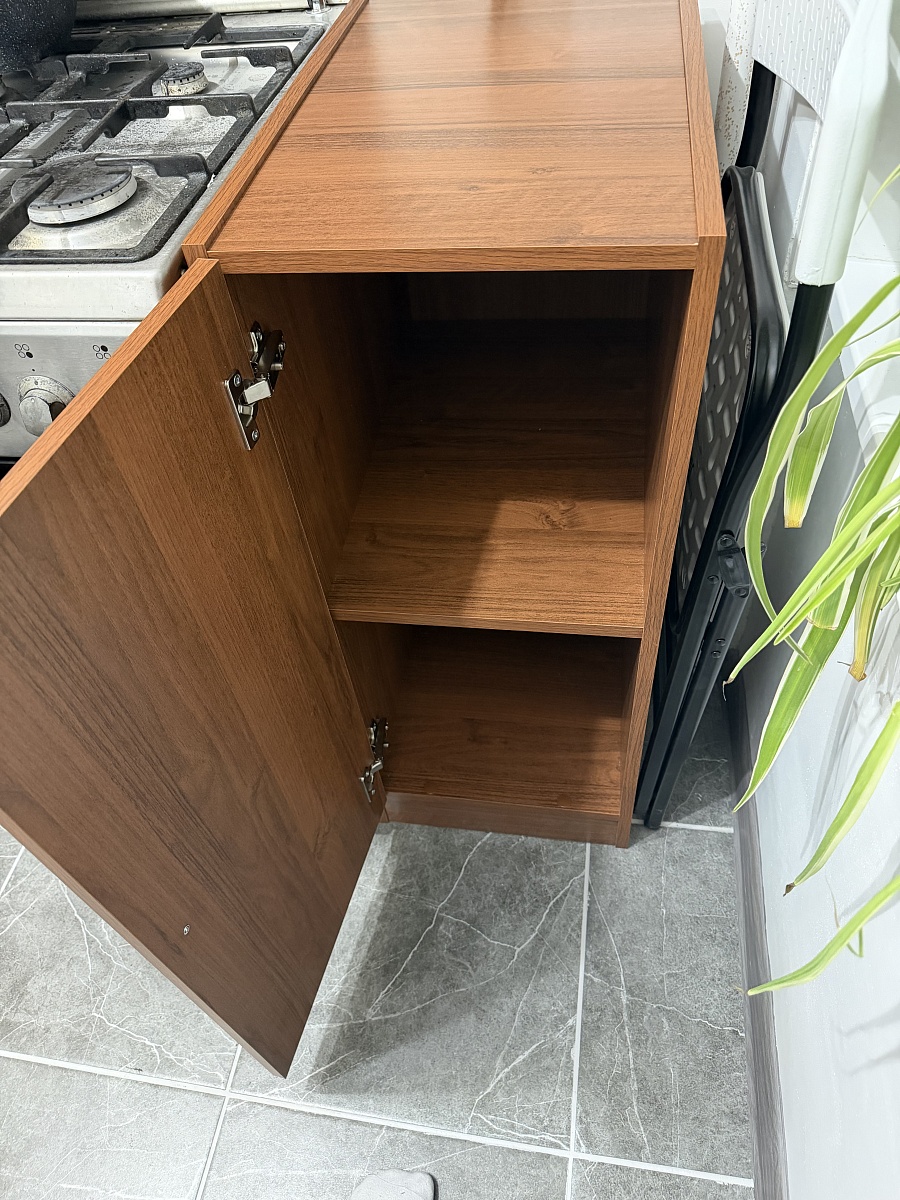 Ребята с бестмебели выручили! Спасибо вам огромное! История такая, в ноябре 2025 сделали ремонту кухни и неверно рассчитали расстояние от плиты до газовой трубы. В итоге образовалась ниша в 35см. Облазила сайты по типу озона, вб, Леруа и необходимого нам размера просто не было. Наткнулась на этот сайт, на свой страх и риск сделала заказ по индивидуальным меркам. Оплату поставила наличными при получении (за что также отдельное спасибо, многие магазины сейчас работают только по полной предоплате) и 6 января нам все привезли. Комплектующие вместе с фурнитурой собрали за час времени на пару с мужем. Я очень довольна! Еще раз спасибо огромное, очень выручили!