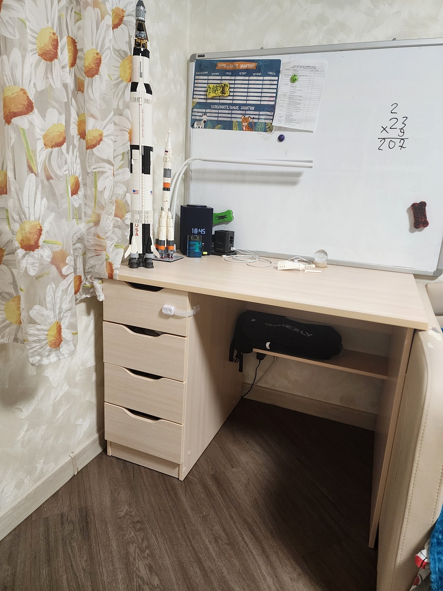 У стола не стандартные размеры, также были пожелания по отдельным элементам (один из которых вырез в задней части столешницы).Внешне очень понравился, хорошо вписался. Во качество на четверку, был небольшой скол в невидимой части стола и пара царапин с тыльной стороны - это не критично так как не видно. Так же в комплекте шли черные мебельные подпятники, хотя к такой расцветки - бежевые (может под цвет ручек ящика для контраста - не критично) Собирал сам, легко разобрался (есть электронный чертеж с описанием и номером детали) крепеж в полном комплекте.Хороший рабочий стол, по приемлемой цене. Спасибо!
