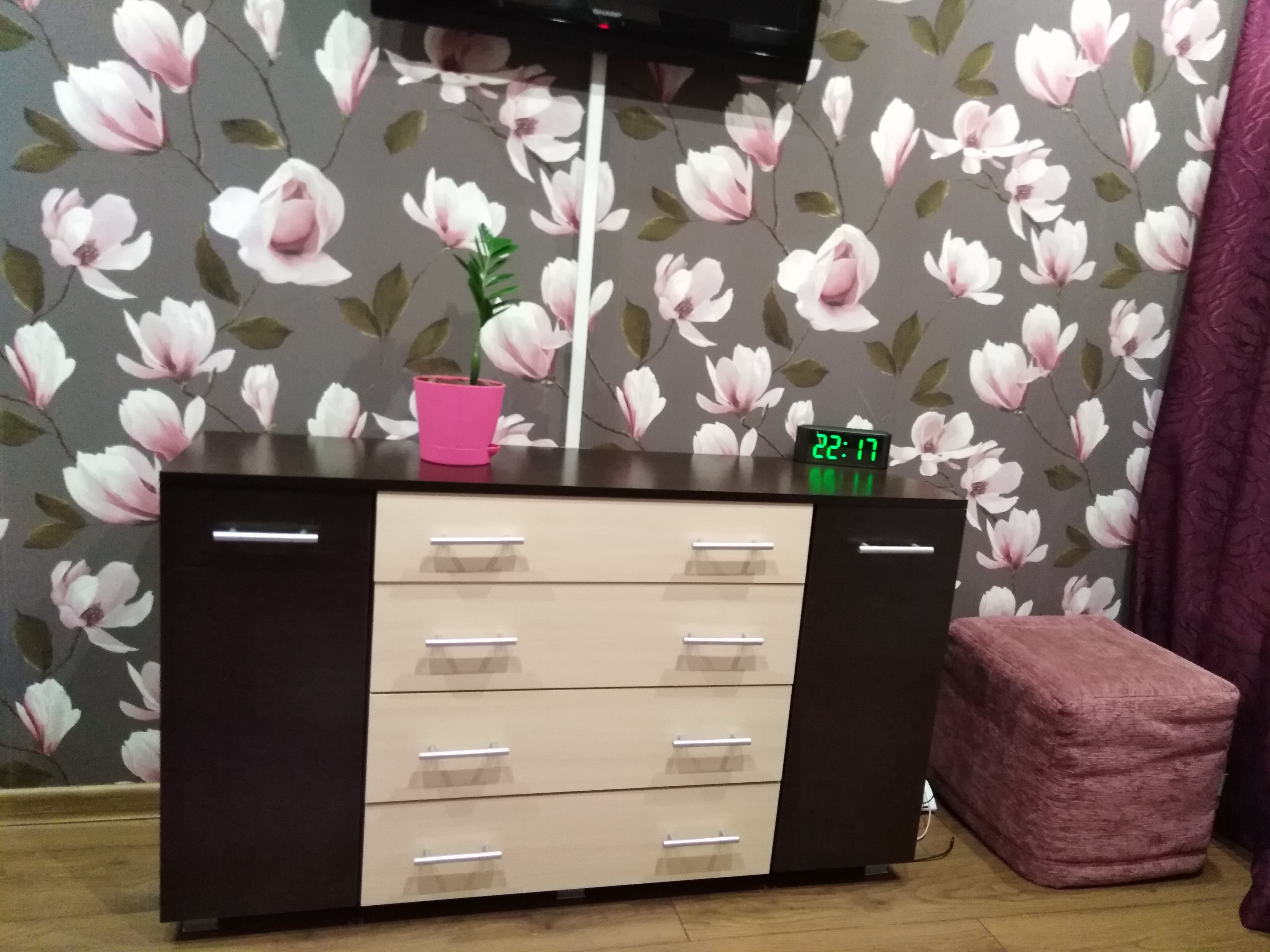 Заказывали комод в спальню для девочек-подростков, понравилось что можно изменить размеры под свои. Цвет подбирали под другую мебель в комнате. Комод качественный и красивый. Отлично вписался в интерьер. Довольны выбором.